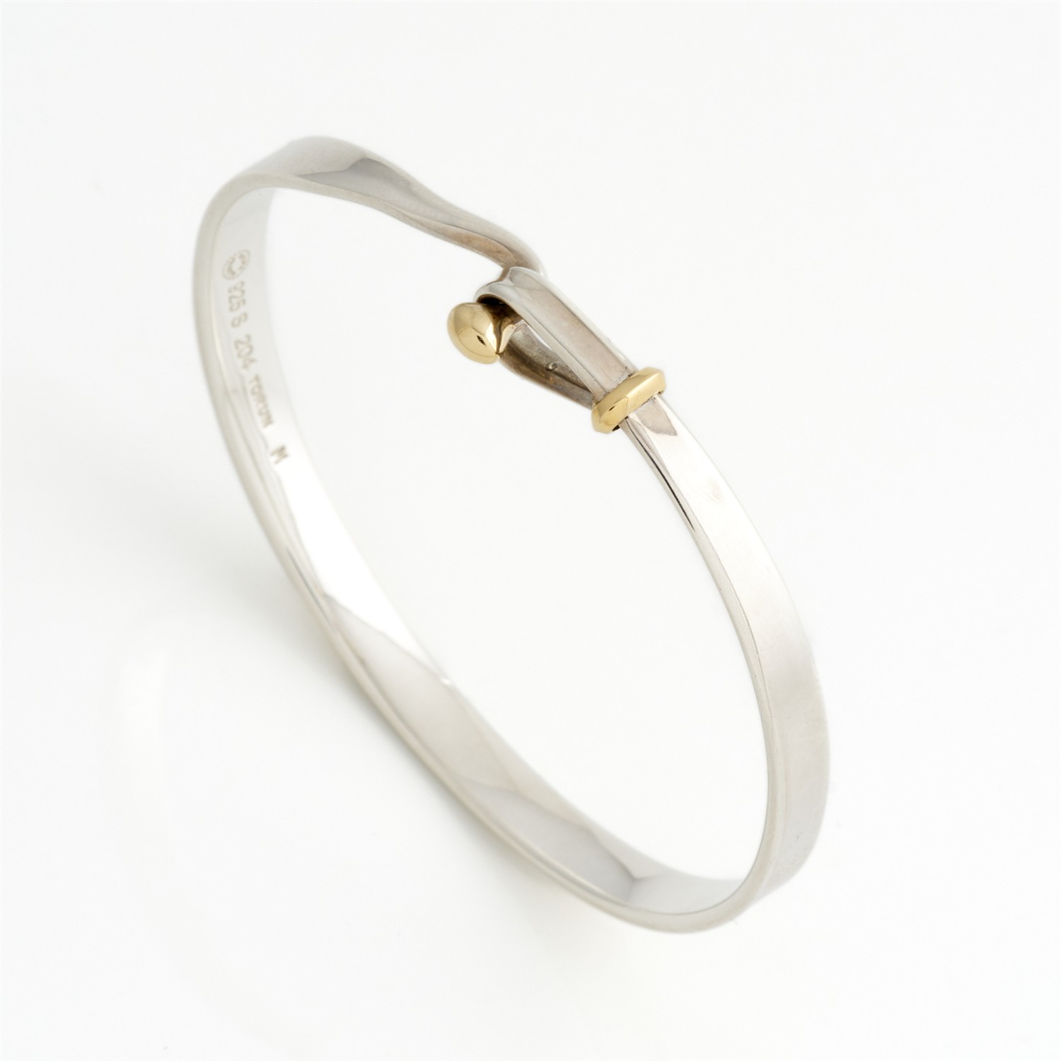 GEORG JENSEN, A 'TORUN' BANGLE IN STERLING SILVER AND 18CT GOLD, NO. 204, INNER DIAMETER 55MM