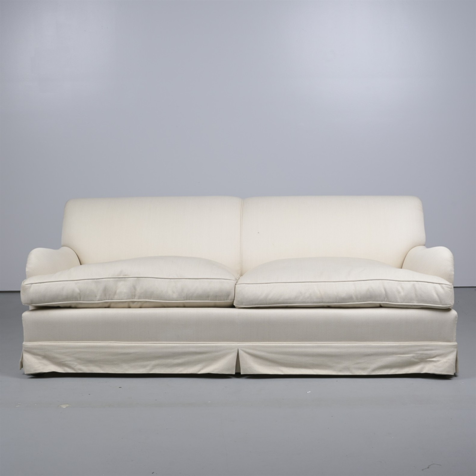 A CONTEMPORARY UPHOLSTERED TWO-SEAT SOFA (A/F) (78H X 214W X 100D CM) (THIS ITEM MUST BE REMOVED BY PROFESSIONAL CARRIERS OR CLIENTS. LEONARD JOEL STAFF CANNOT ASSIST WITH CARRYING OR DELIVERY OF THIS ITEM)
