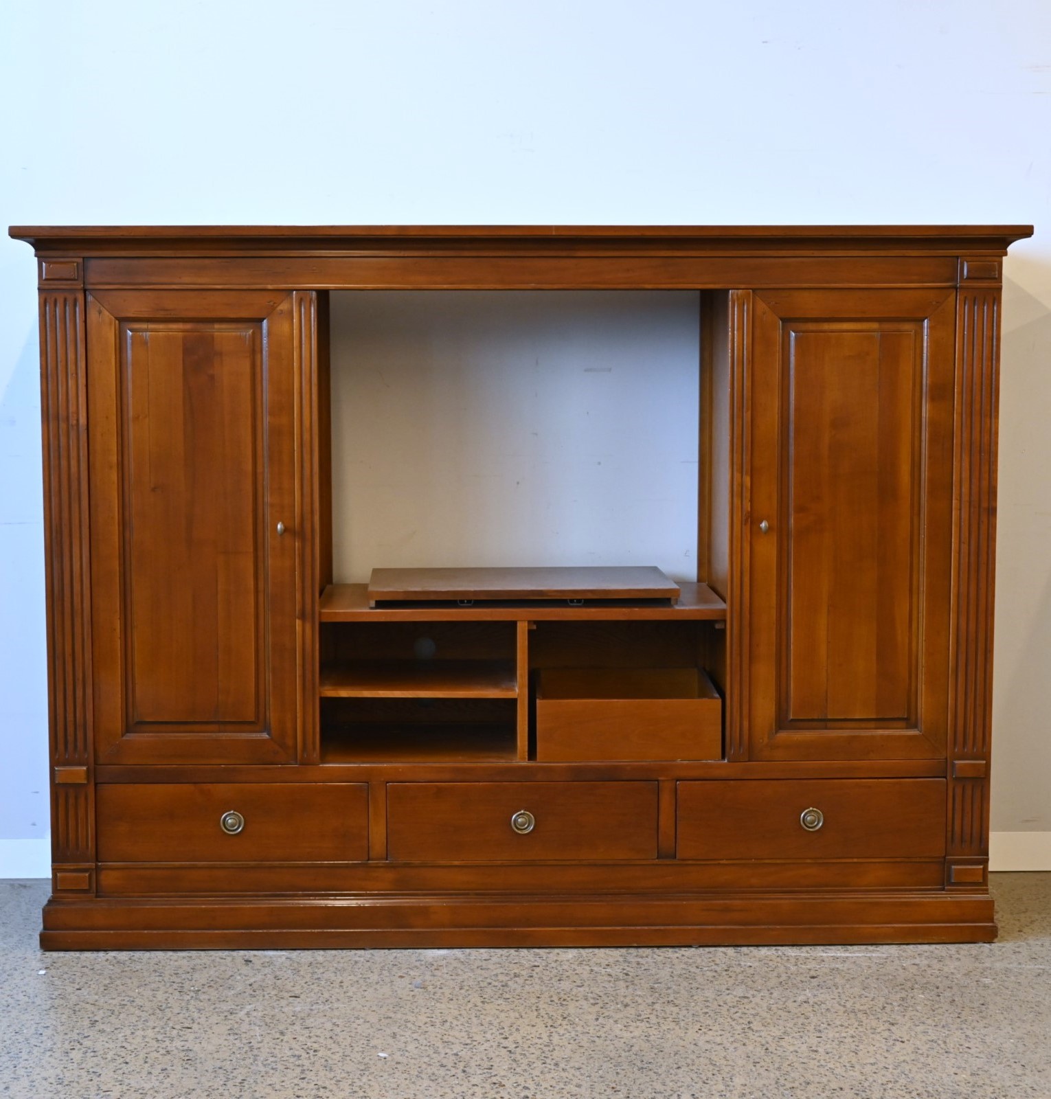 A HARDWOOD BOOKCASE BY BRIDGETTE FORESTIER (160CM H X 220CM W X 60CM D) (THIS ITEM MUST BE REMOVED BY PROFESSIONAL CARRIERS OR CLIENTS. LEONARD JOEL STAFF CANNOT ASSIST WITH CARRYING OR DELIVERY OF THIS ITEM)