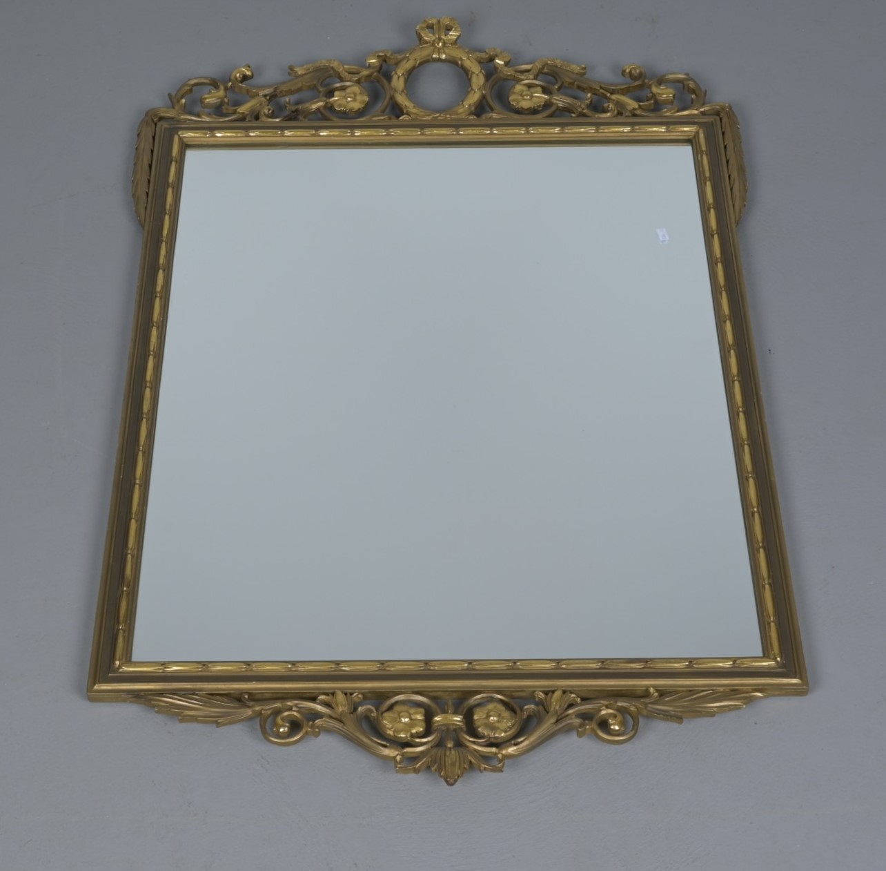 A GILT-FRAMED WALL MIRROR (128CM H X 84CM W)