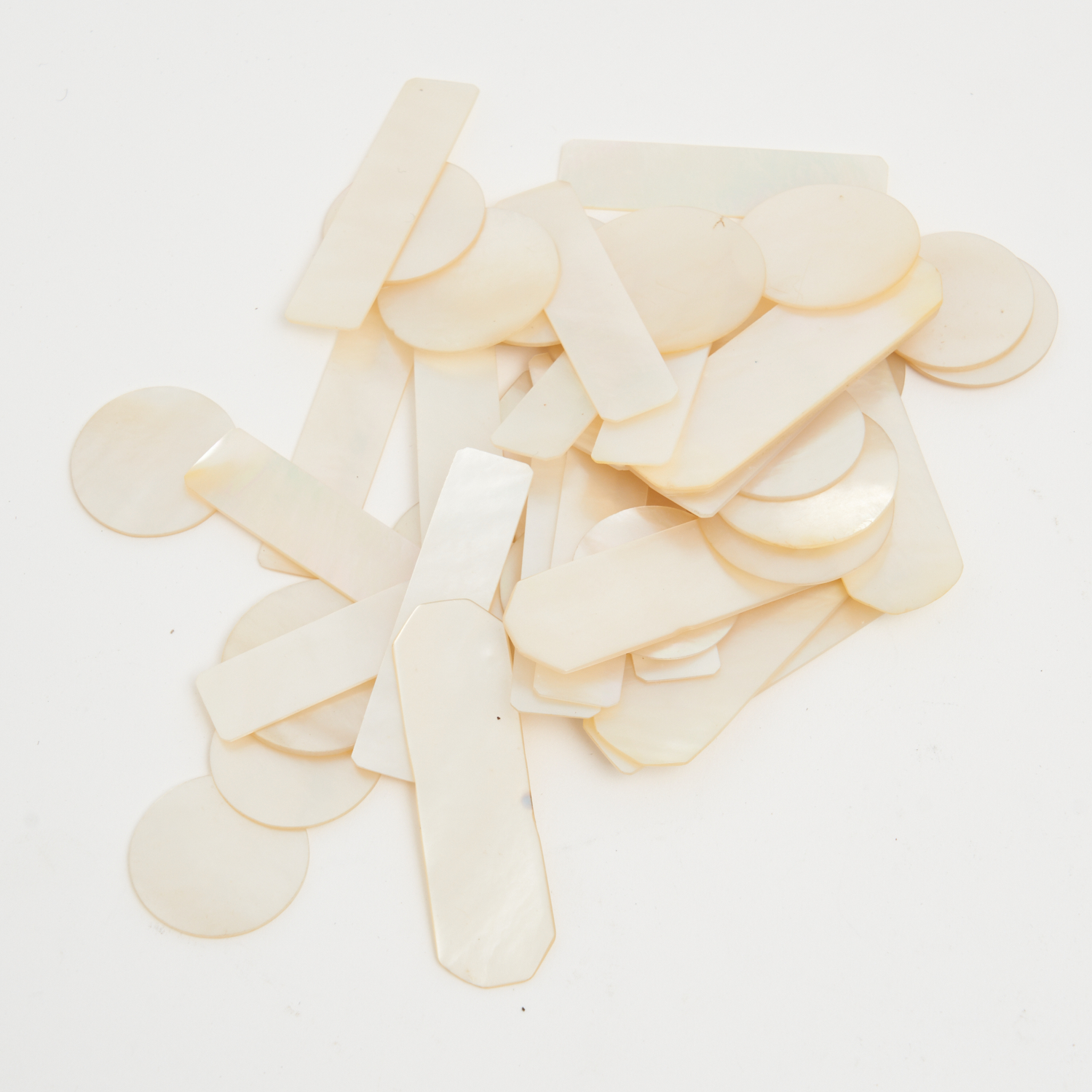 A COLLECTION OF ANTIQUE FRENCH MOTHER OF PEARL GAME TOKENS L.6.5CM