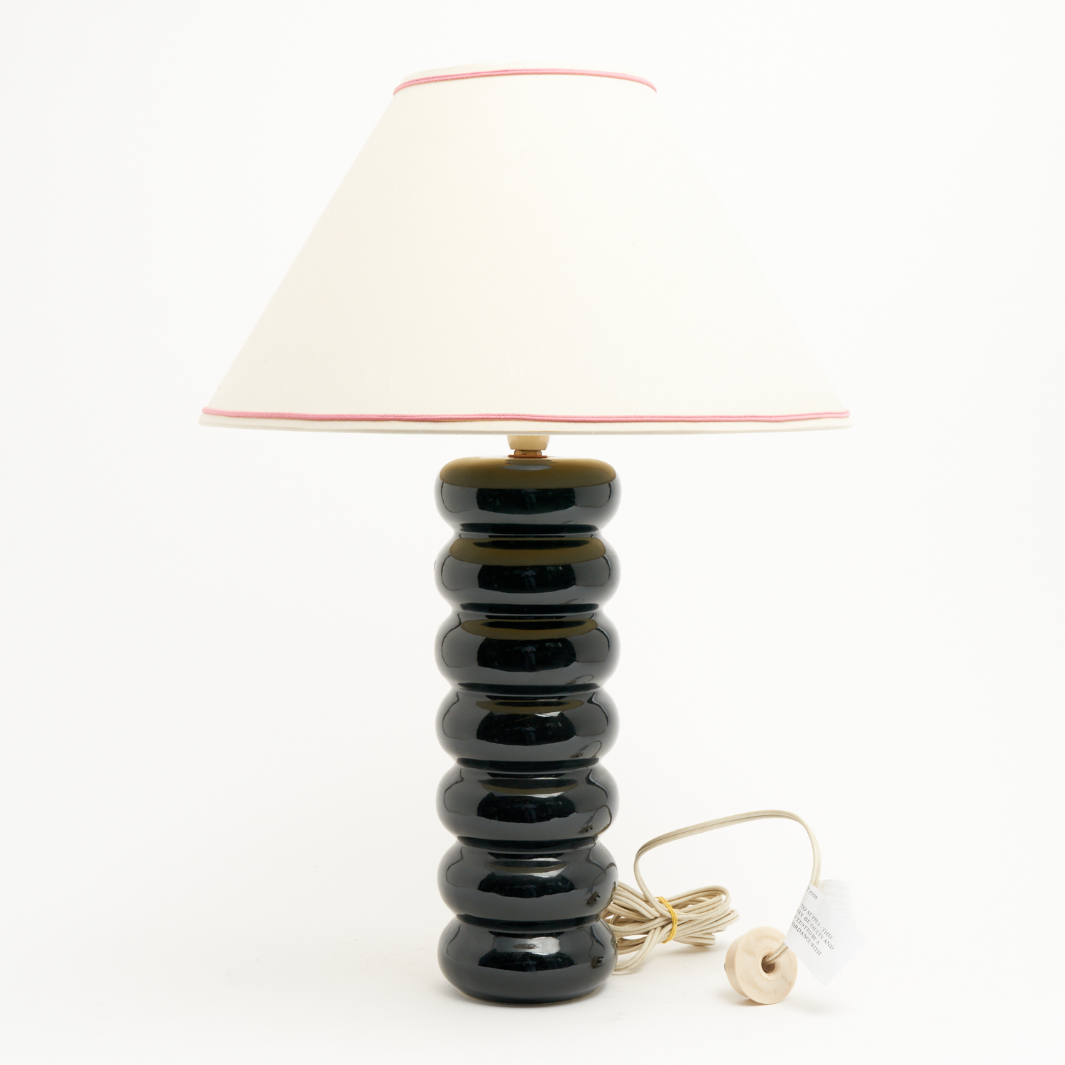 A BLACK GLAZED CERAMIC BASED TABLE LAMP H.59CM
