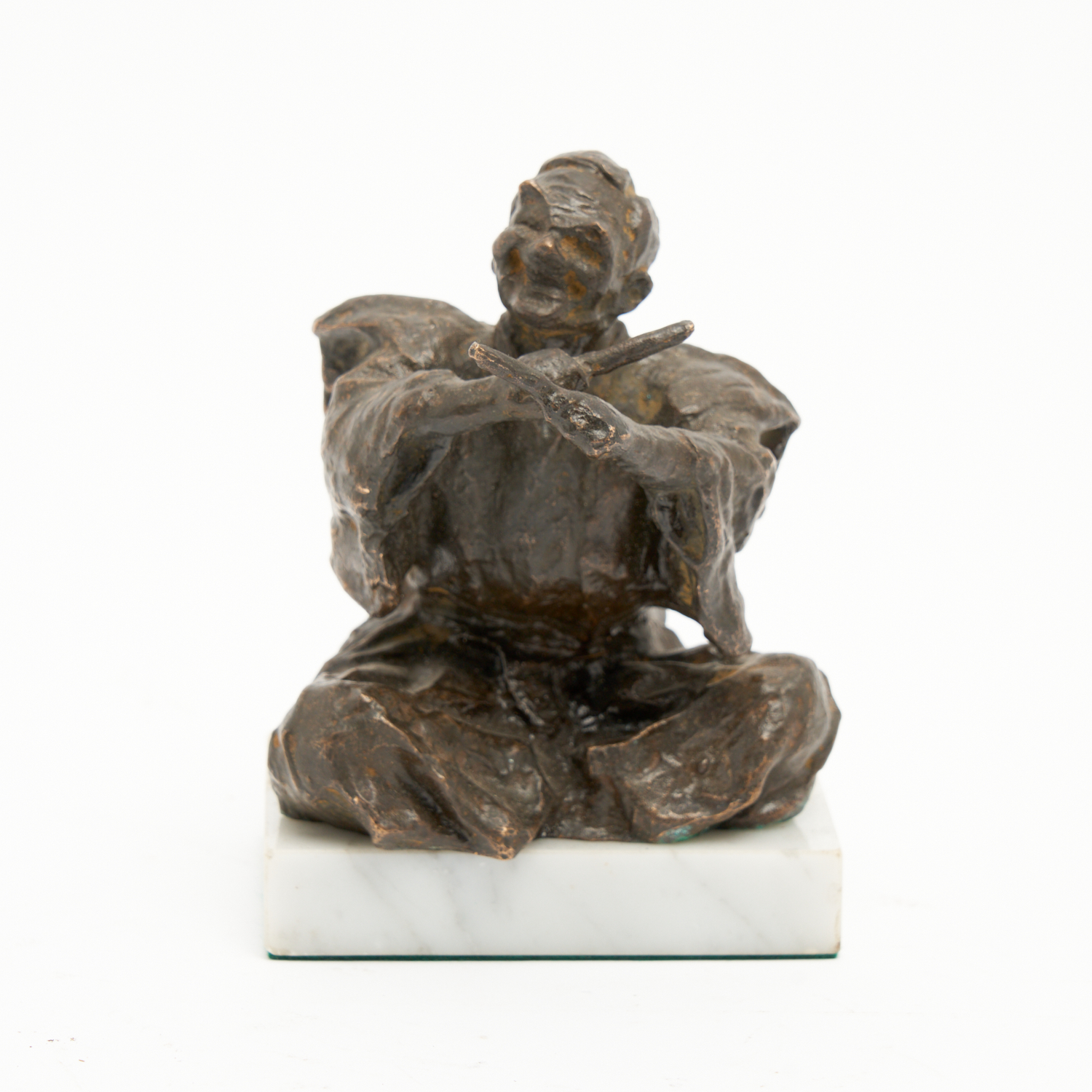 AN EARLY 20TH CENTURY BRONZE MUSICIAN FIGURE, ON MARBLE BASE H.14CM