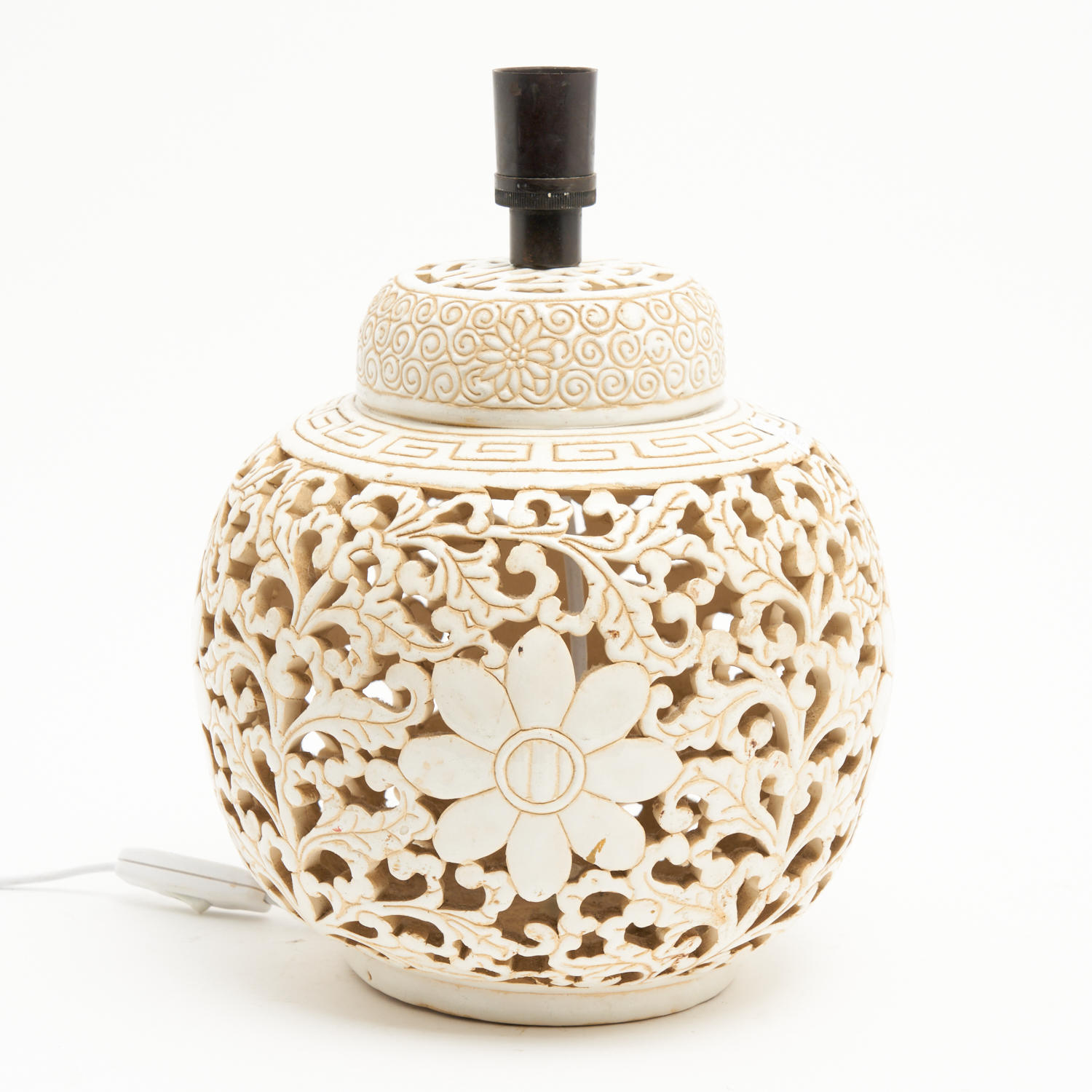 A CHINESE PIERCED BASE TABLE LAMP H.30CM