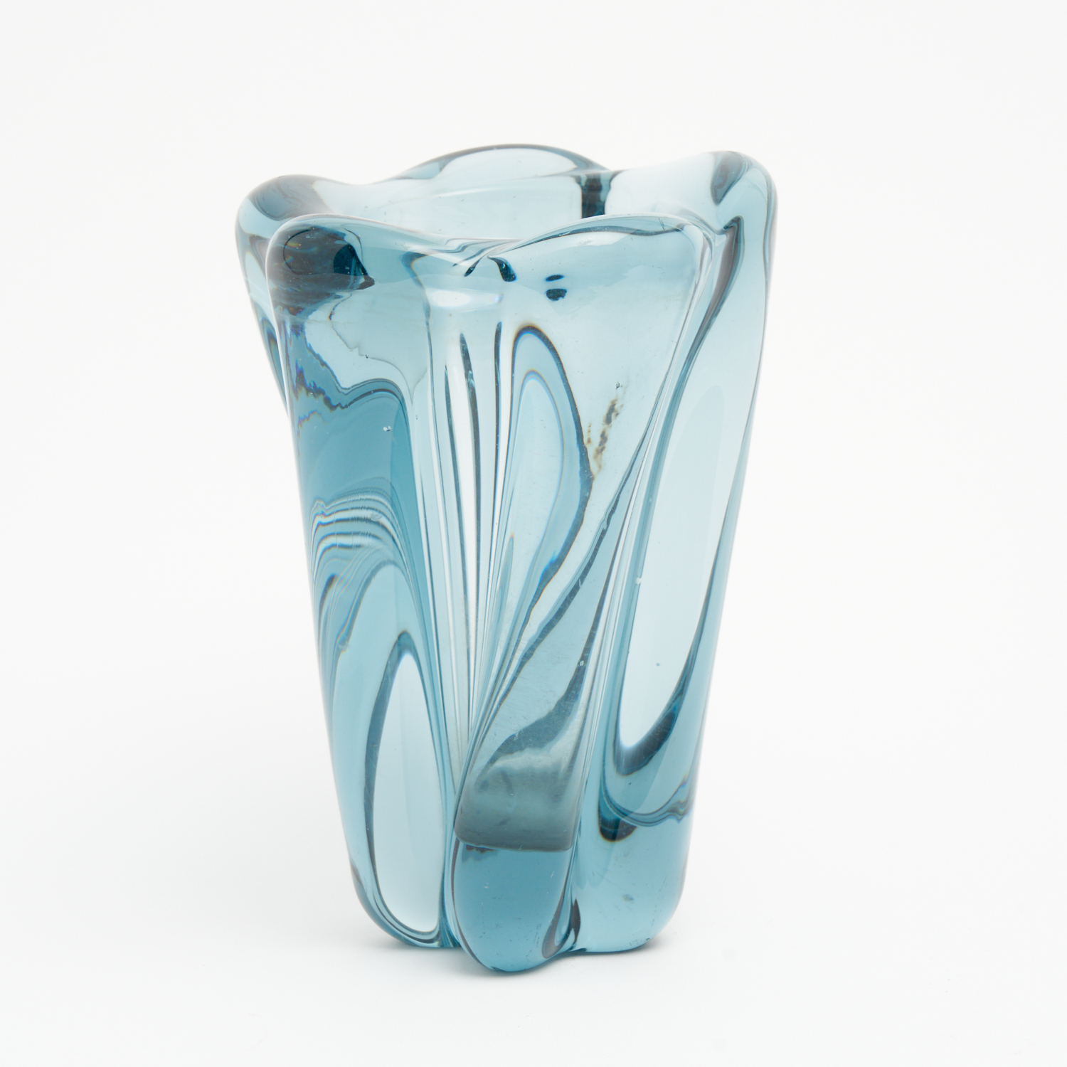 A BLUE ART GLASS TWIST FORM VASE H.20CM
