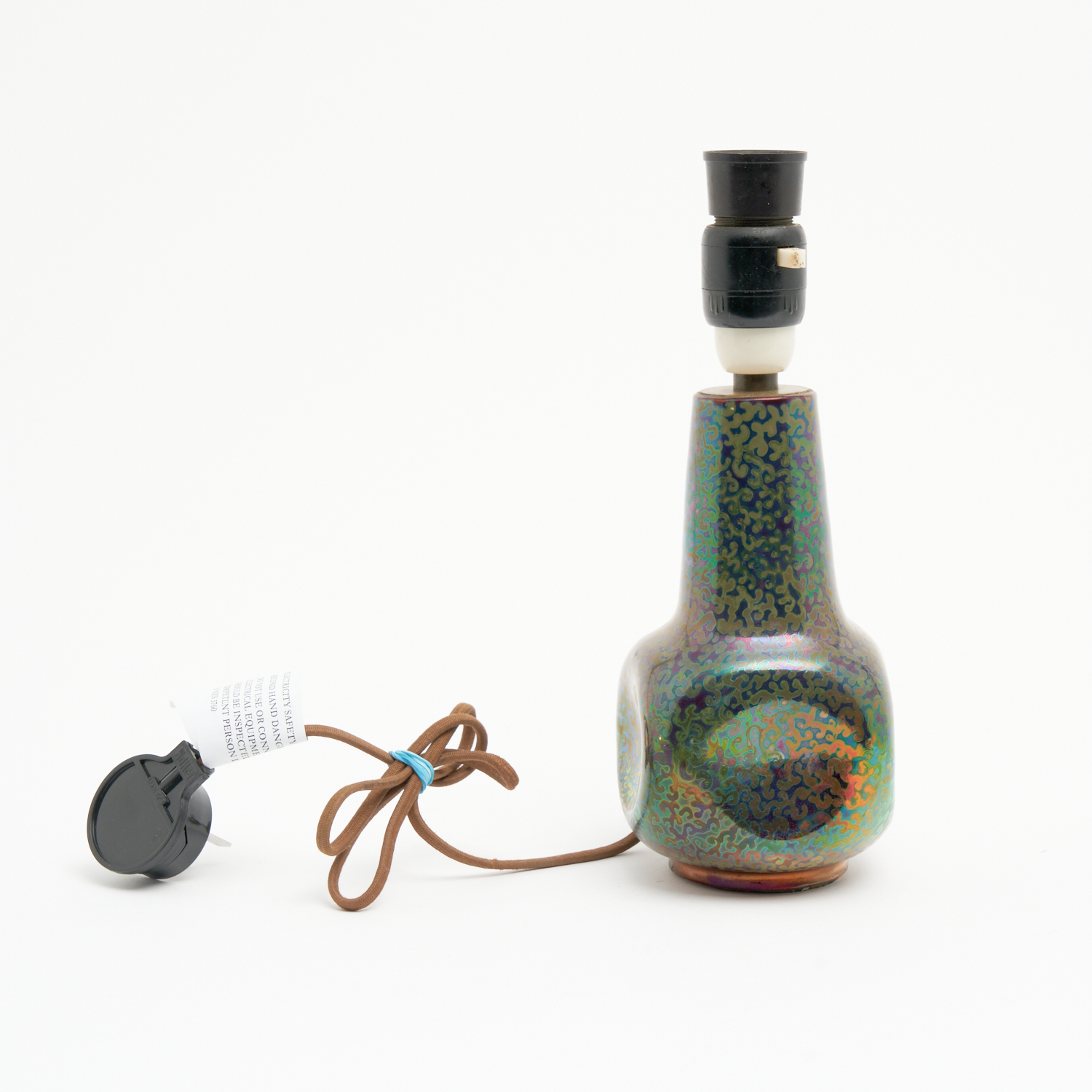 AN ENGLISH TIN GLAZED IRIDESCENT CERAMIC LAMP BASE H.26CM