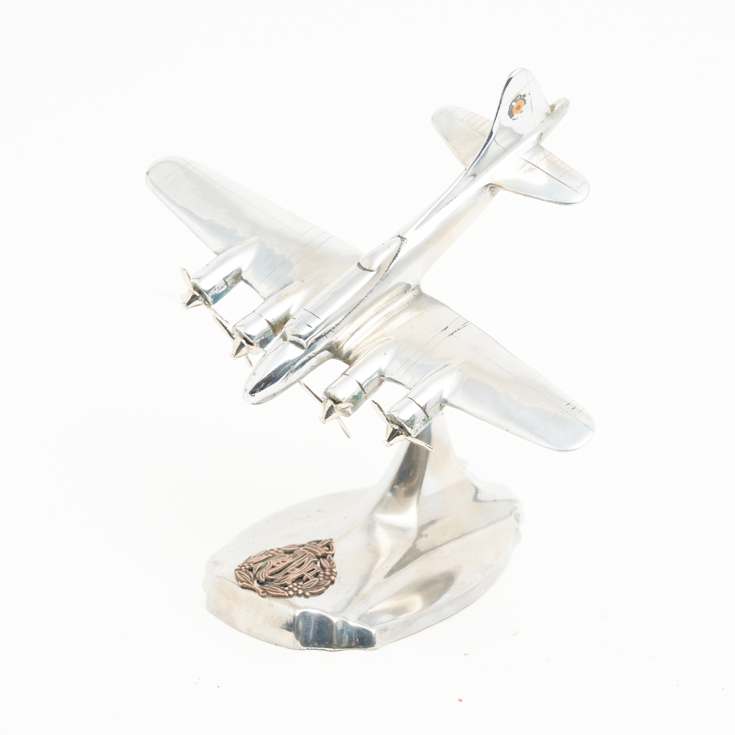 A WORLD WAR II RAAF CHROMED BRASS BOMBER DESK ORNAMENT H.21CM