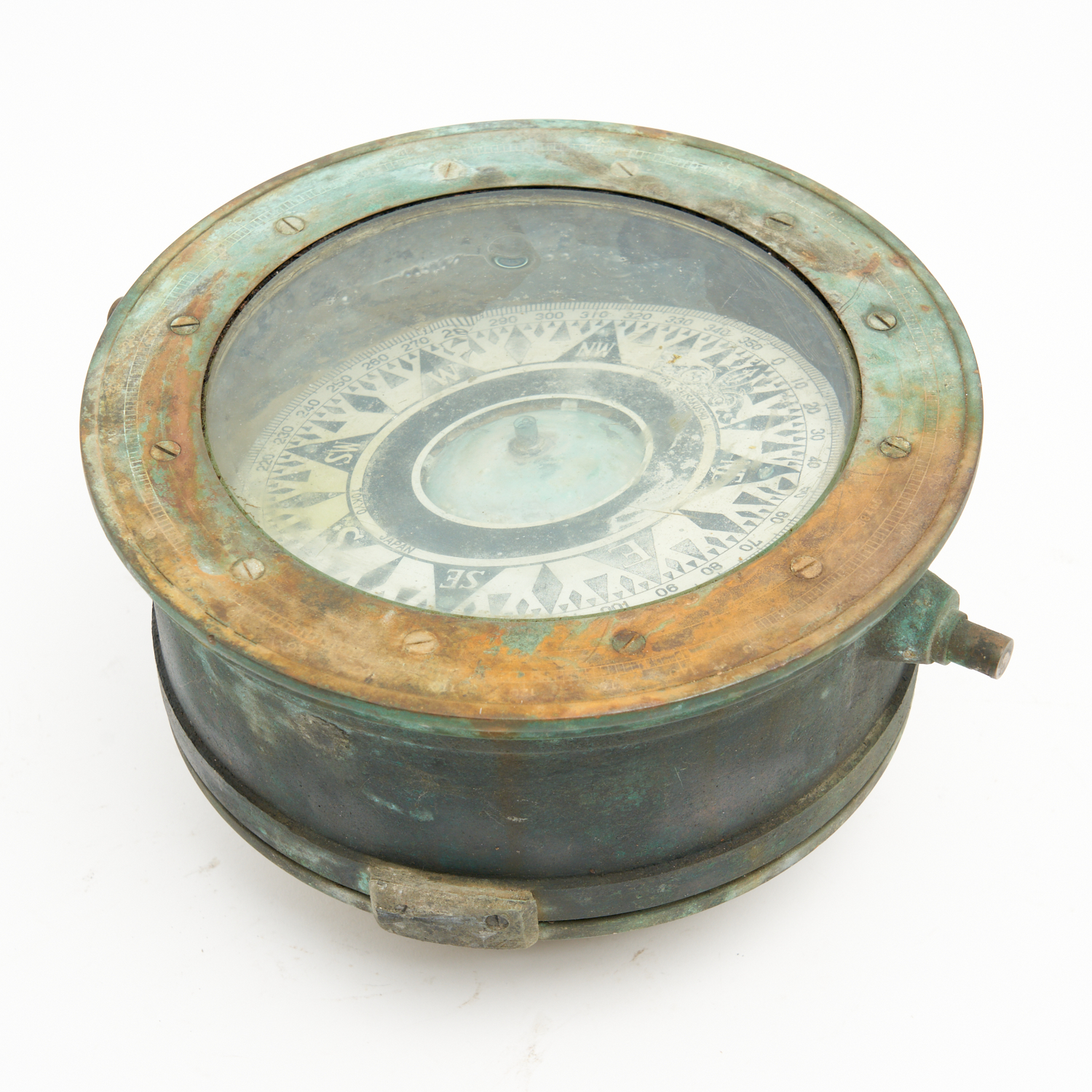 A JAPANESE BRONZE MOUNTED SHIPS BINNACLE COMPASS DIA.24CM