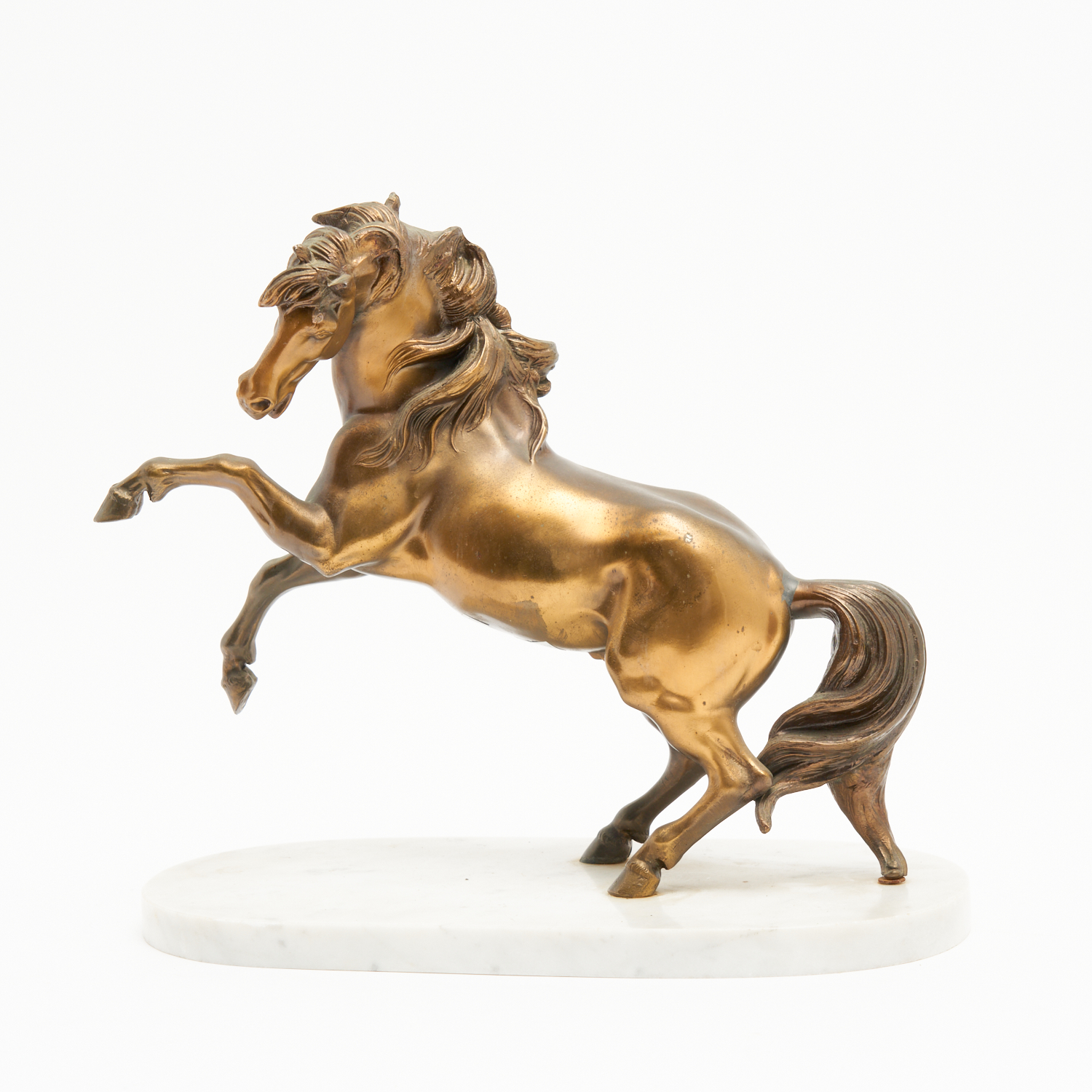 AN ITALIAN MARBLE BASED BRONZE REARING HORSE FIGURE L.35CM