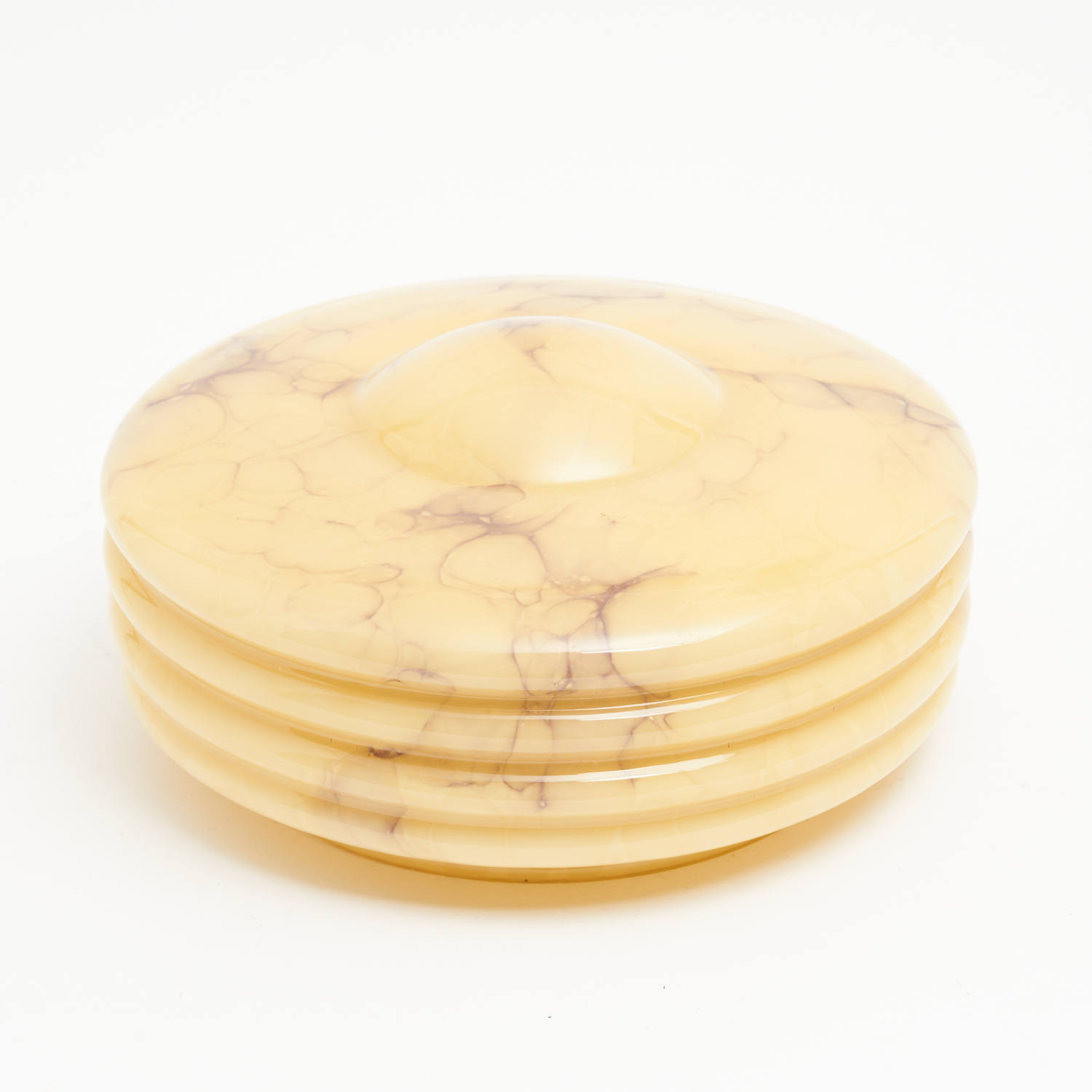AN ART DECO MOULDED GLASS CEILING SHADE WITH ORIGINAL CEILING MOUNT AND CHAINS L.30CM