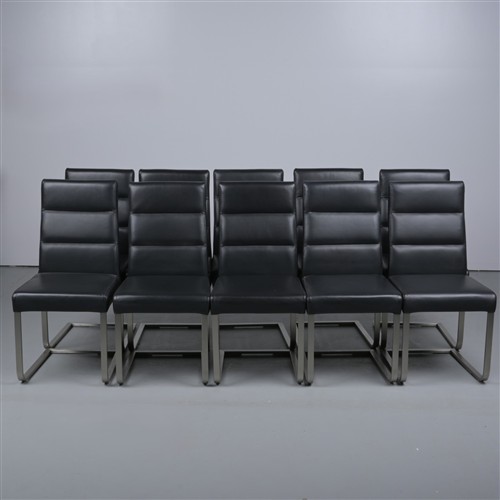 A SET OF TEN LEATHER UPHOLSTERED CANTILEVER DINING CHAIRS FOR GAINSVILLE (96H X 49W X 60D CM) (THIS ITEM MUST BE REMOVED BY PROFESSIONAL CARRIERS OR CLIENTS. LEONARD JOEL STAFF CANNOT ASSIST WITH CARRYING OR DELIVERY OF THIS ITEM)