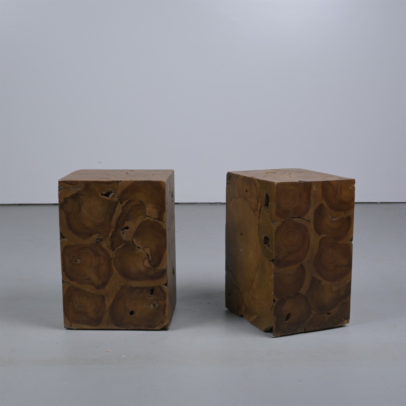 A PAIR OF TEAK SIDE TABLES (50CM H X 35CM W X 30CM D)