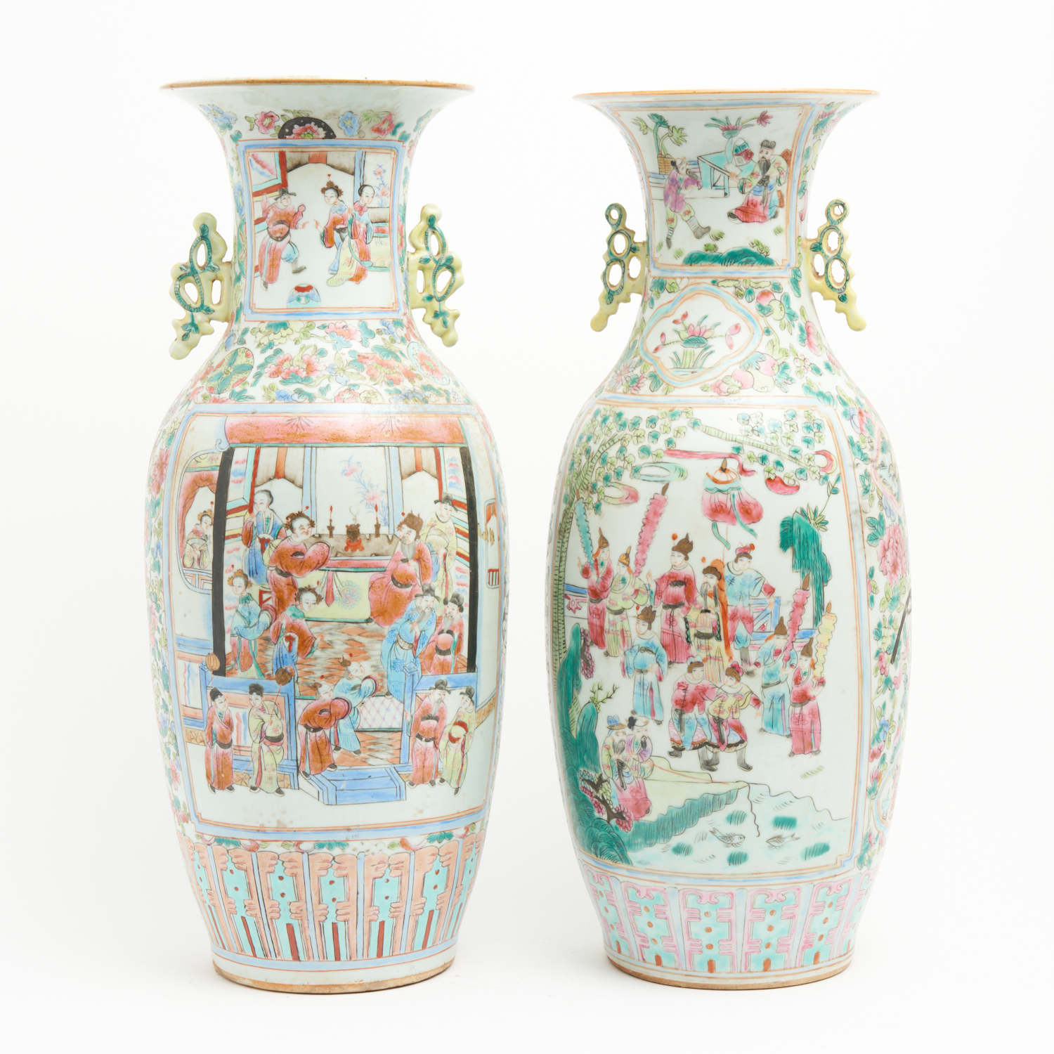 A PAIR OF LARGE CHINESE REPUBLIC PERIOD FAMILLE ROSE VASES H.59CM