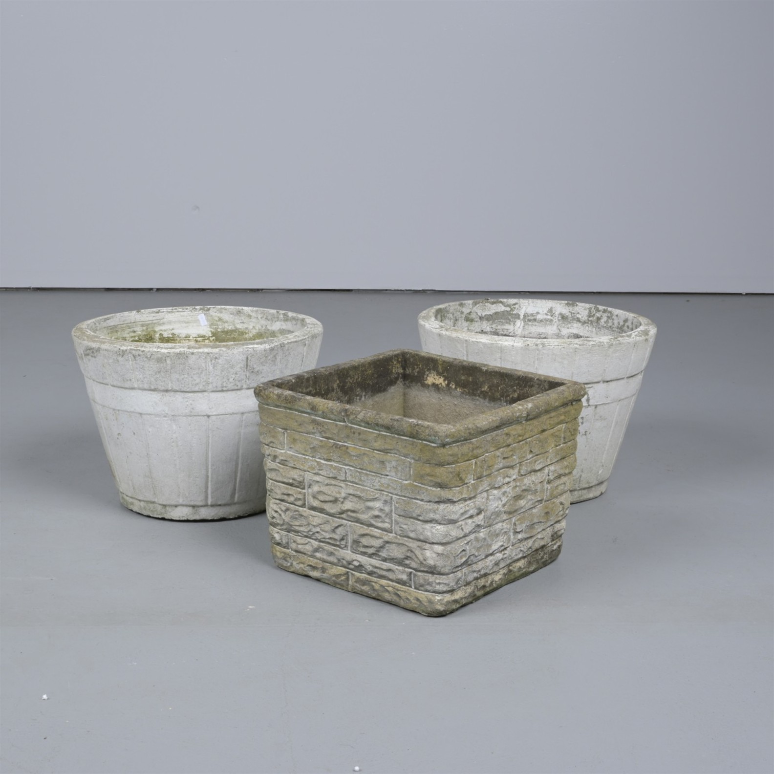 A GROUP OF THREE CONCRETE GARDEN POTS (A/F) (32CM H X 45CM DIA) (THIS ITEM MUST BE REMOVED BY PROFESSIONAL CARRIERS OR CLIENTS. LEONARD JOEL STAFF CANNOT ASSIST WITH CARRYING OR DELIVERY OF THIS ITEM)