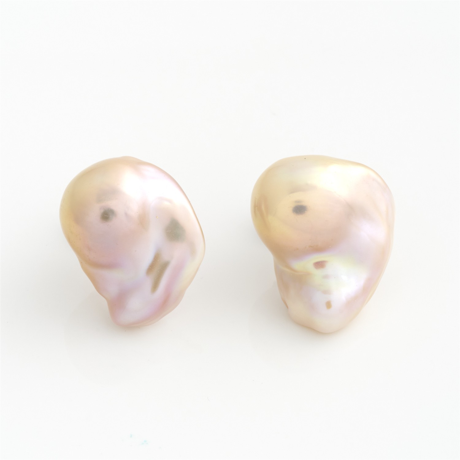 A PAIR OF BAROQUE PEARL EARRINGS IN 18CT WHITE GOLD, TO POST AND BUTTERFLY FITTINGS, PEARLS MEASURING APPROXIMATELY 30MM X 20MM, TOTAL WEIGHT 17.7GMS