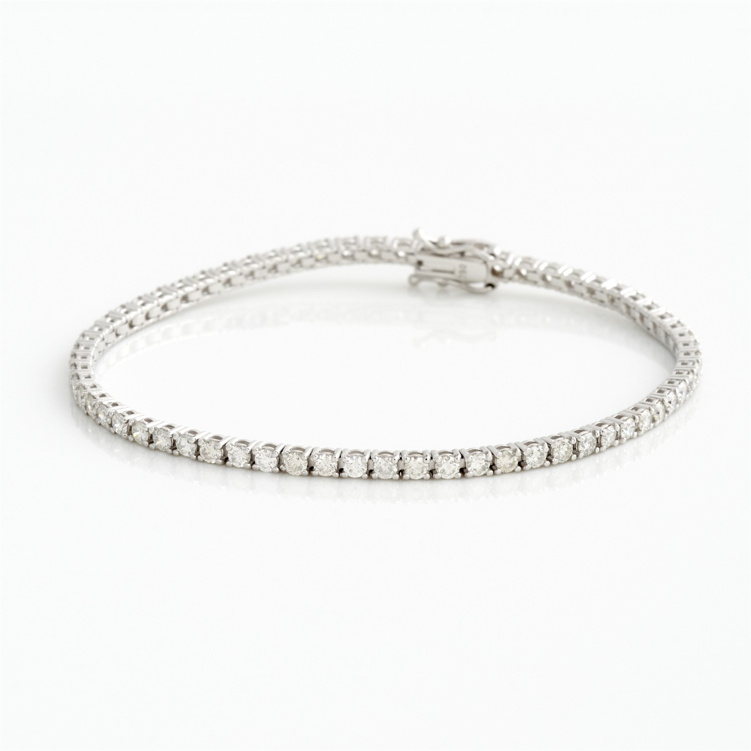 A DIAMOND LINE BRACELET IN 18CT WHITE GOLD, THE DIAMONDS WEIGHING APPROXIMATELY 3.50CT, G COLOUR, VS CLARITY, 180MM, 7.66GMS, ACCOMPANIED BY A VALUATION