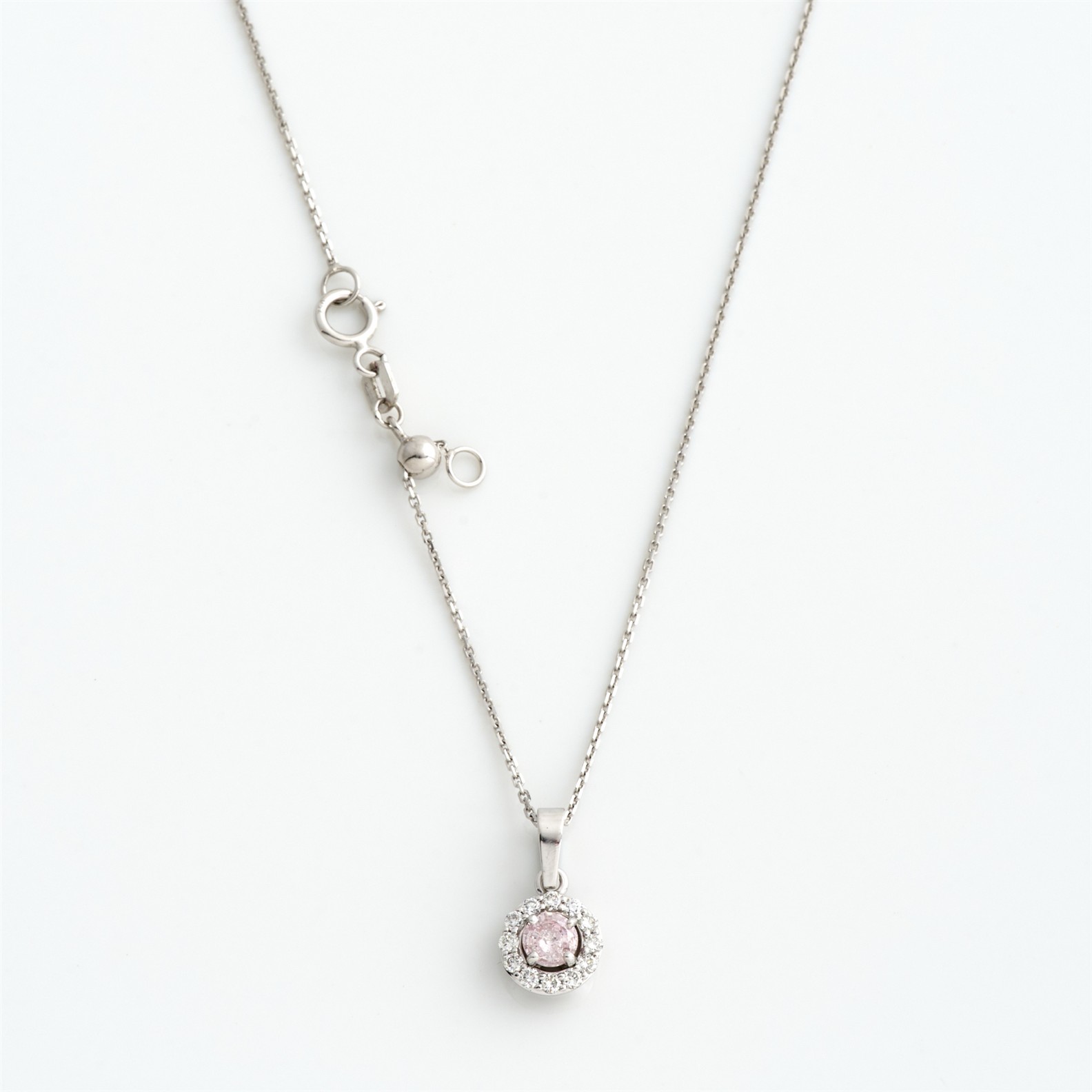 A NATURAL PINK DIAMOND NECKLACE IN 18CT WHITE GOLD, THE PINK DIAMOND WEIGHING 0.32CT, THE WHITE DIAMONDS WEIGHING 0.20CT, 450MM (ADJUSTABLE), 3.31GMS