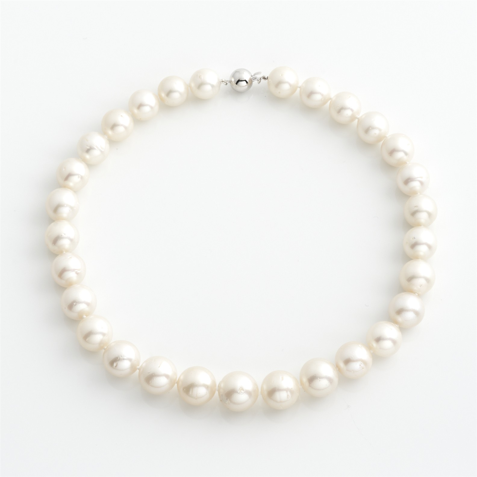 A STRAND OF WHITE SOUTH SEA PEARLS, TO A CLASP IN 14CT WHITE GOLD, THE PEARLS RANGING IN SIZE FROM 13MM TO 16.2MM, TOTAL LENGTH 440MM