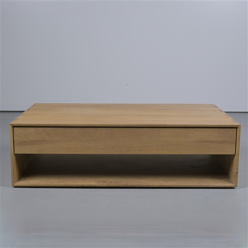A CONTEMPORARY HARDWOOD COFFEE TABLE (36CM H X 120CM W X 21CM D)