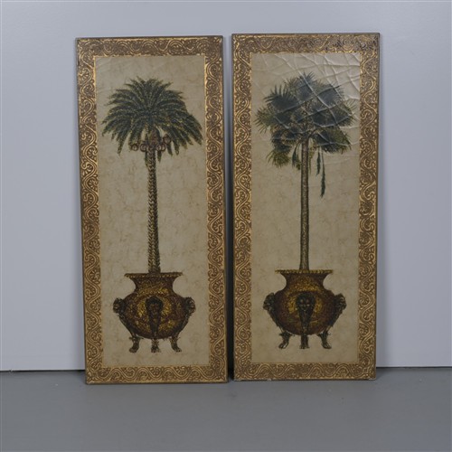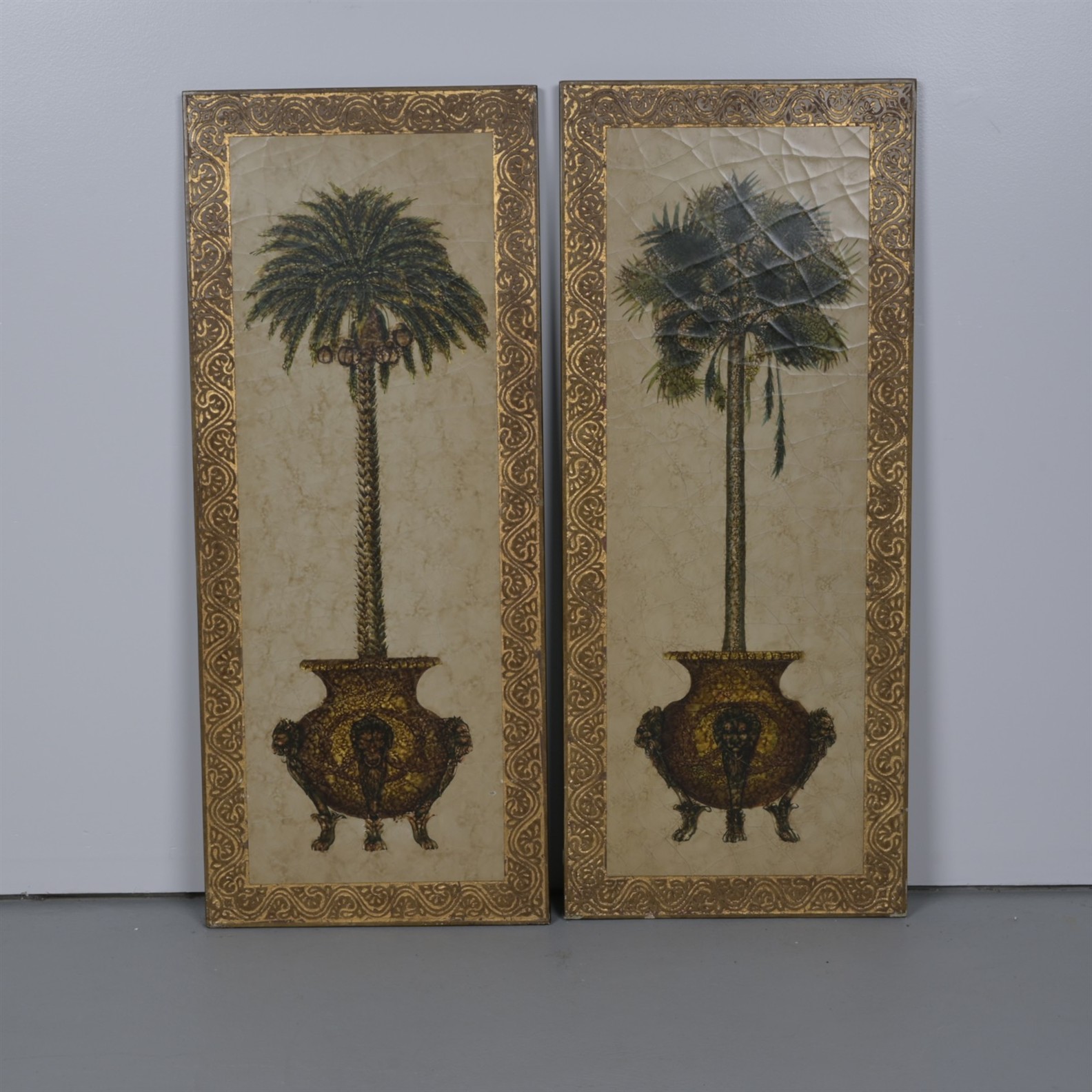 A PAIR OF WALL HANGINGS DEPICTING PALMS (122CM H X 51CM W)