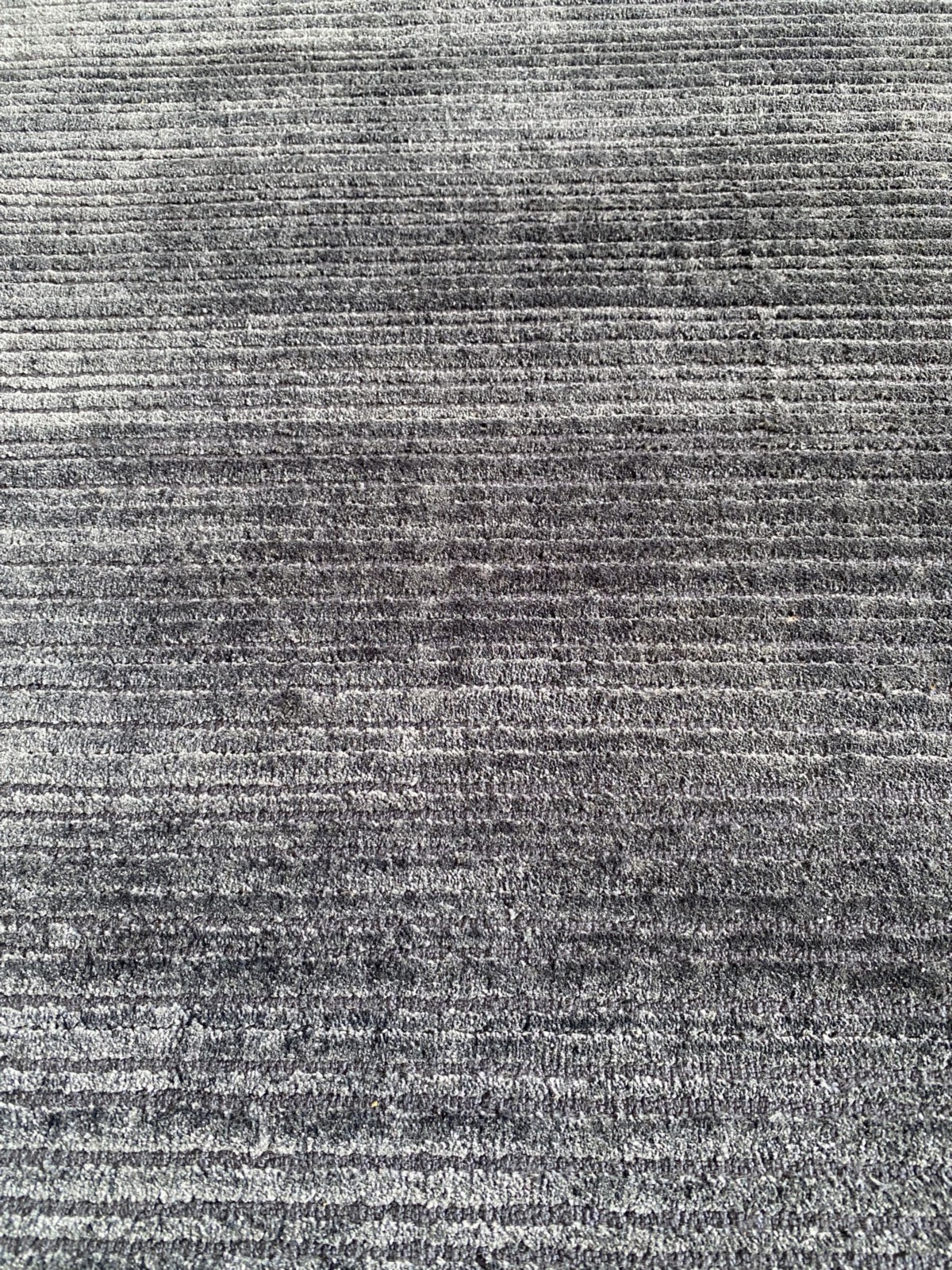 WOOL PILE. HAND-MADE LOOM KNOT WITH DENSE NAVY PILE WITH NAVY SILK TEXTURED LOOPS THROUGHOUT.