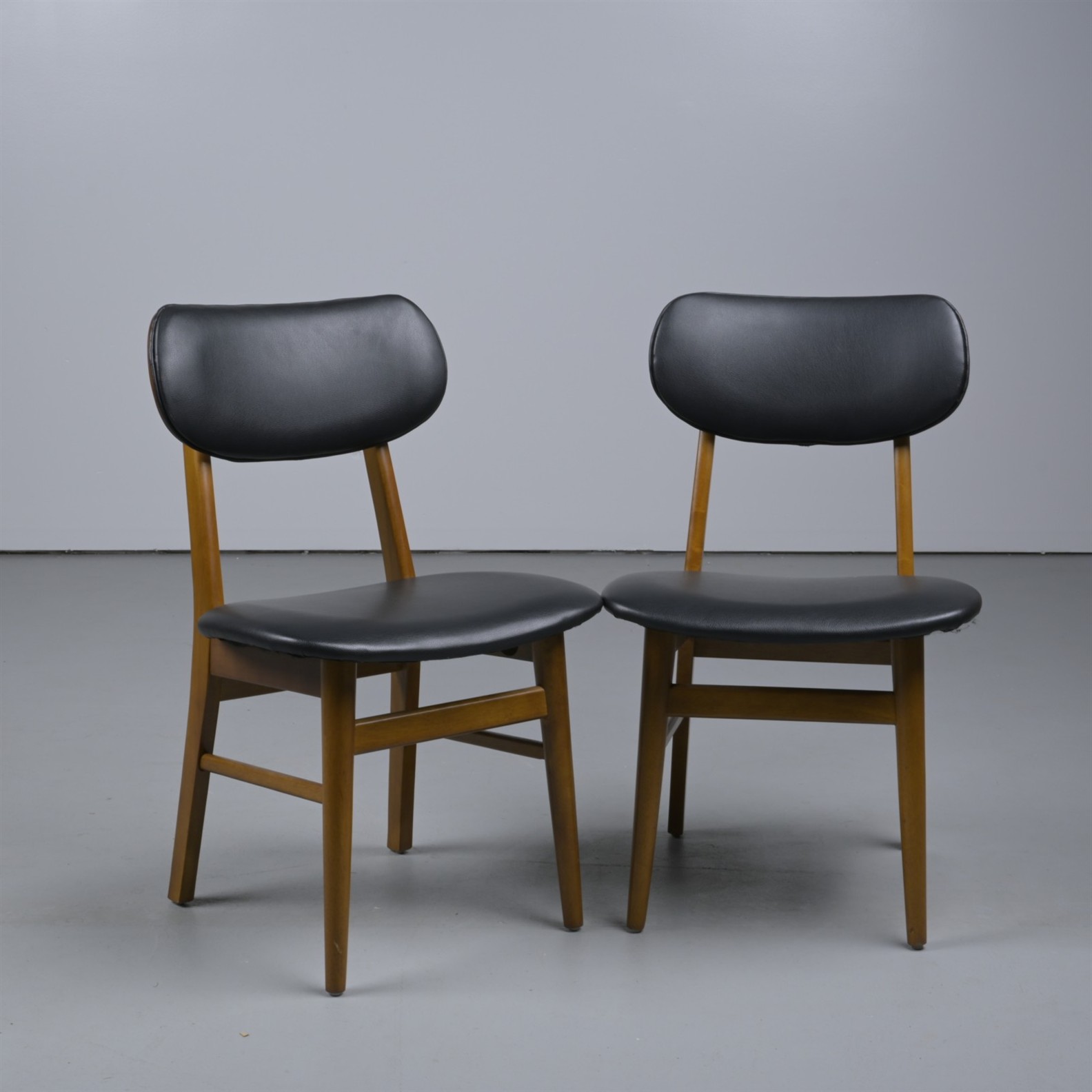 A PAIR OF MID-20th DANISH-STYLE TEAK AND LEATHER CHAIRS (83CM H X 49CM W X 43CM D)