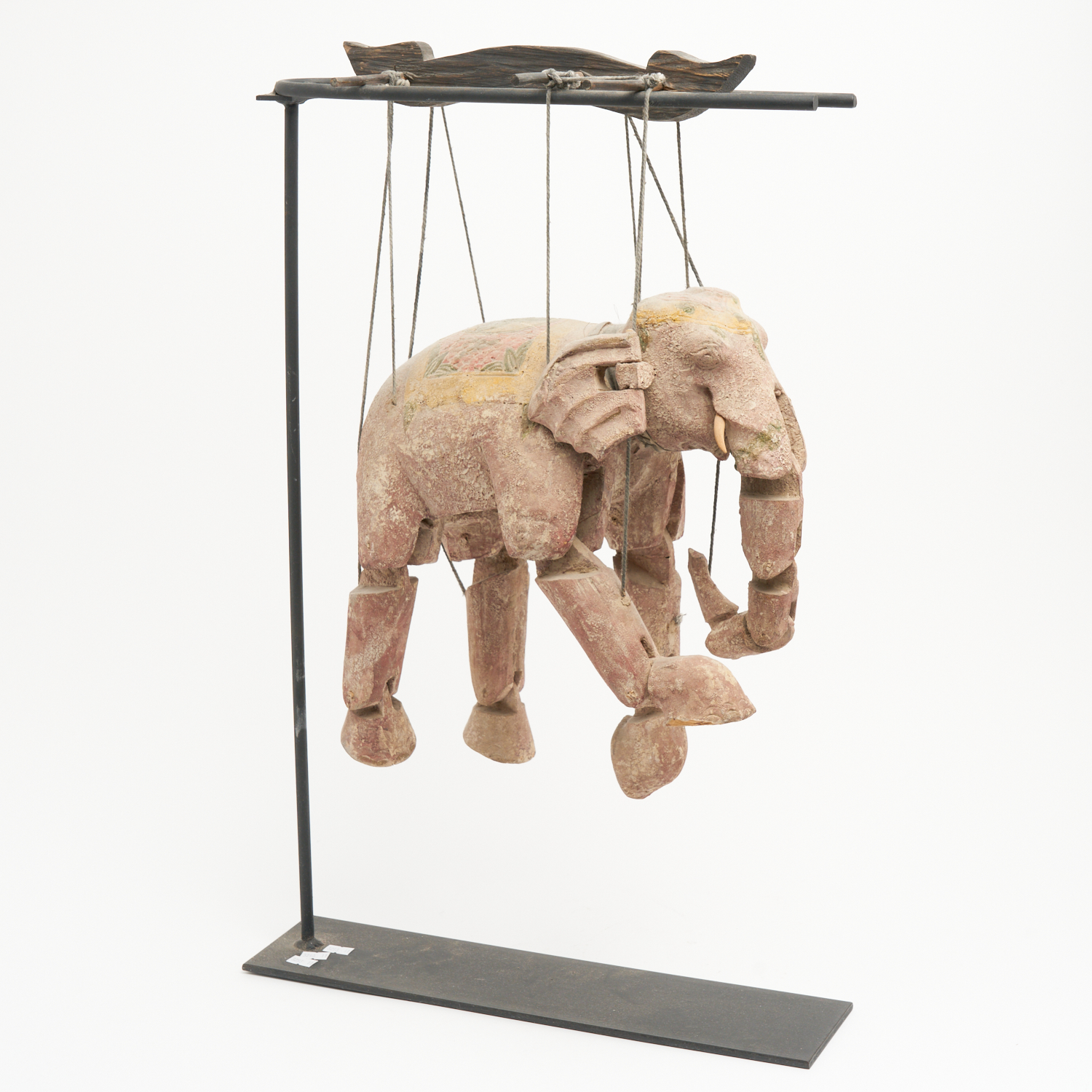 A LARGE ELEPHANT MARIONETTE ON STAND L.35CM