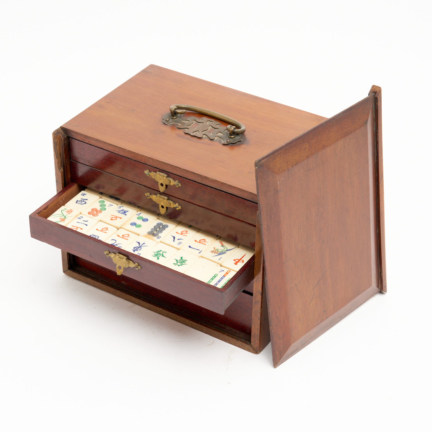 A MAHJONG SET IN TIMBER CASE L.23CM