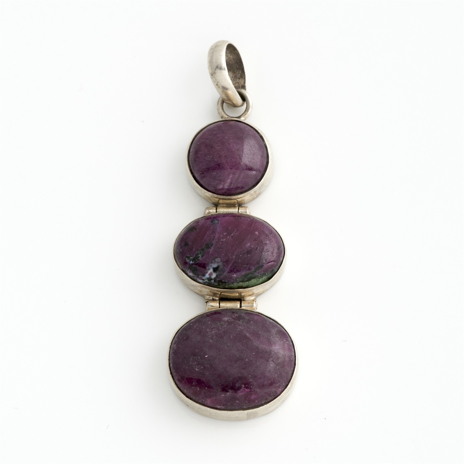 A RUBY ZOISITE PENDANT IN STERLING SILVER, 65MM