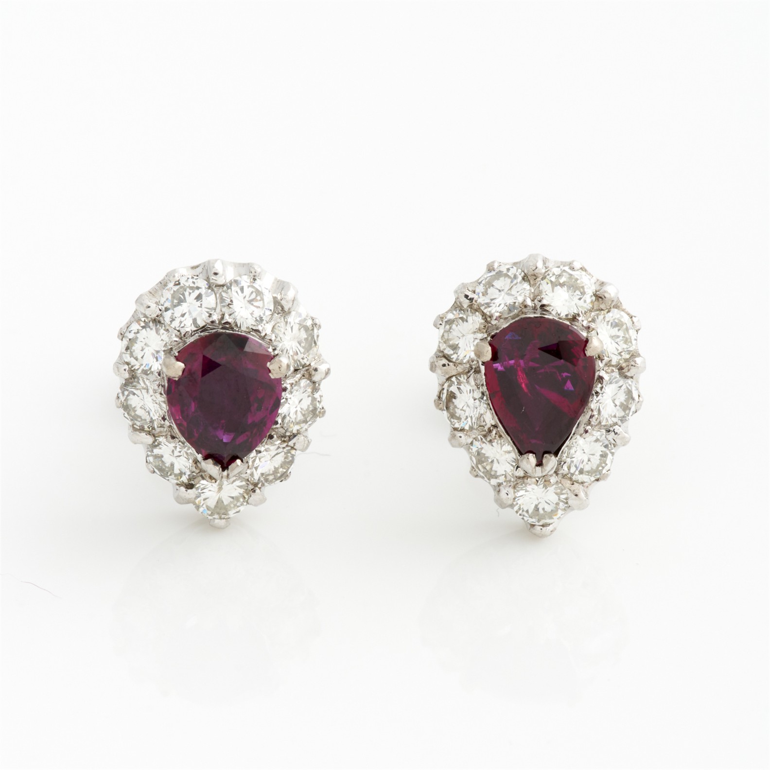 A PAIR OF RUBY AND DIAMOND EARRINGS IN 18CT WHITE GOLD, TO POST AND BUTTERFLY FITTINGS, 3.96GMS