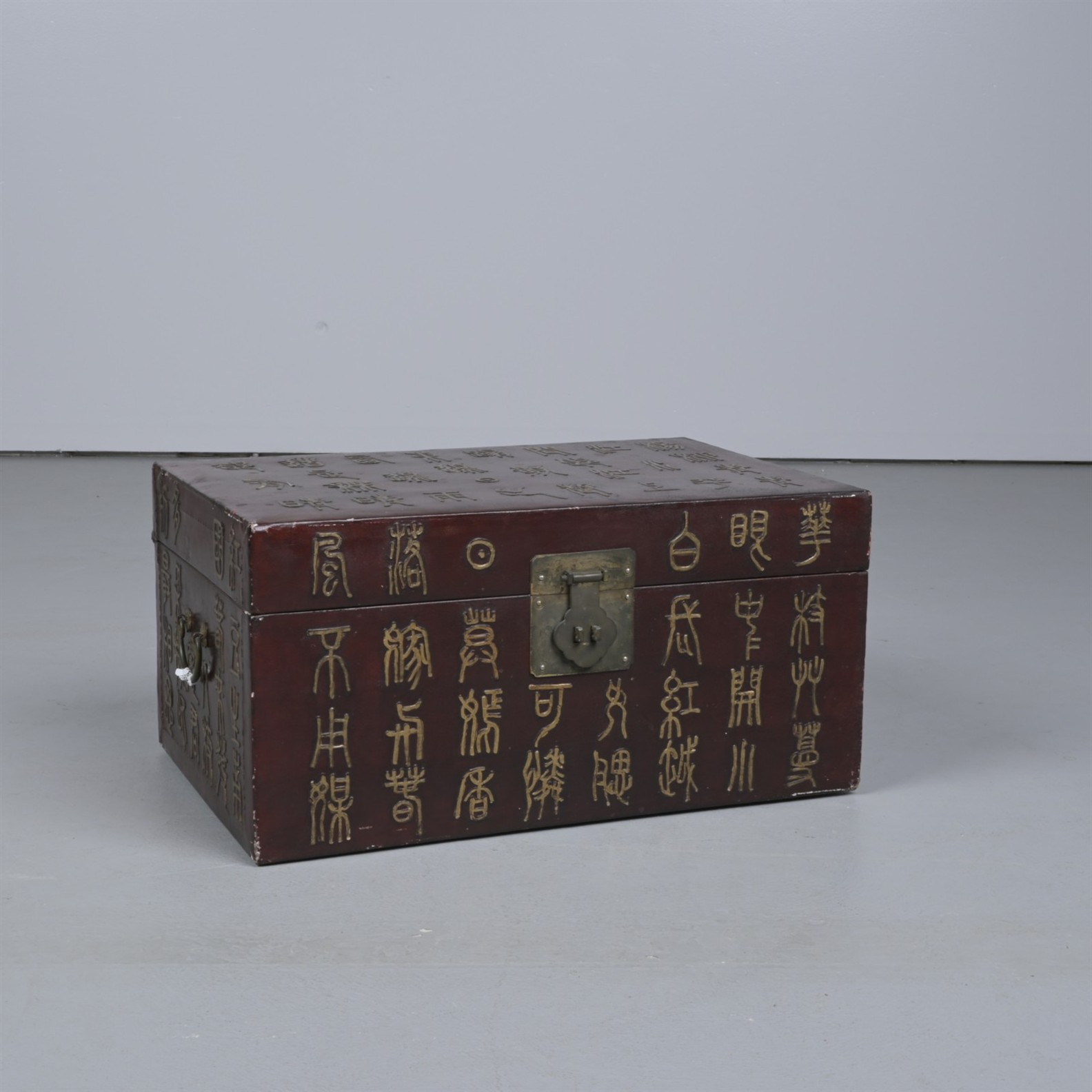 A SMALL CHINESE LACQUERED WOOD CHEST (30CM H X 60CM W X 40CM D)