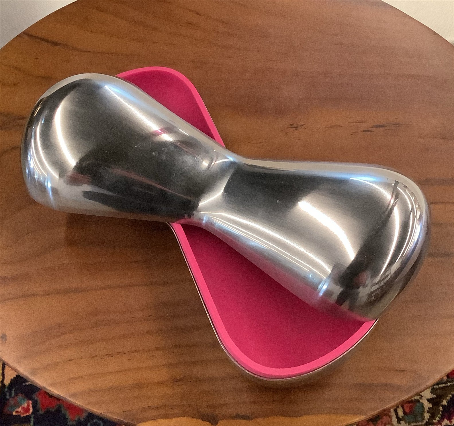 A KARIM RASHID FOR GEORG JENSEN STAINLESS STEEL LIMITED EDITION SPIN BOX L.19.5CM