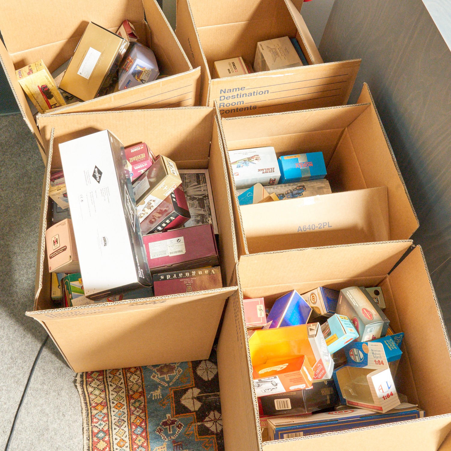 FIVE LARGE BOXES CONTAINING A RANGE OF MODEL CAR BOXES