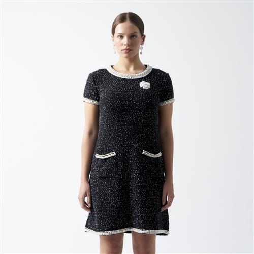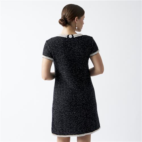 Styled in black cashmere with simulant pearl embellishment, marked size 38.