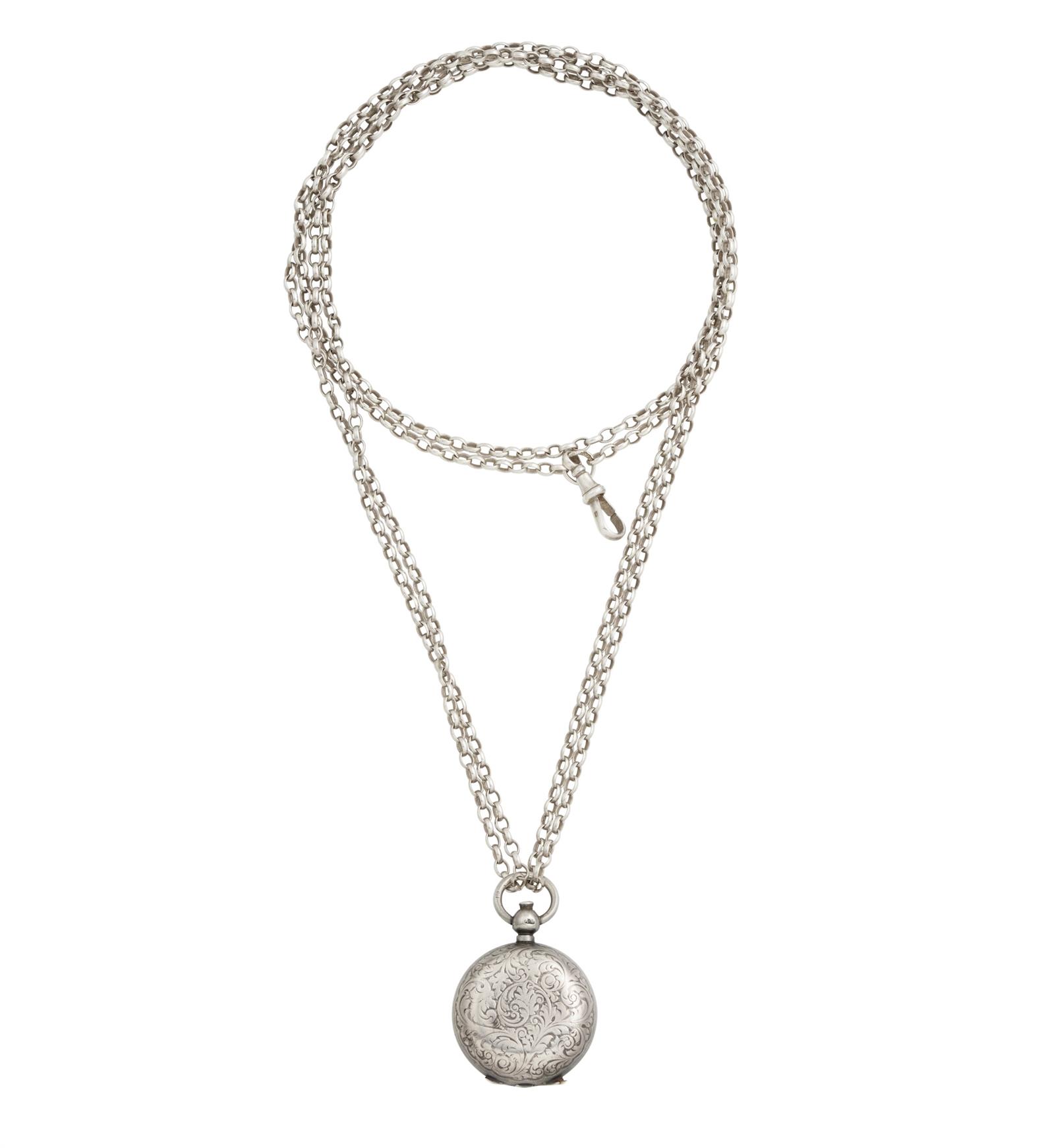 Supported by a sterling silver chain, pendant length 45mm, inner circumference 780mm, gross weight approximately 50.2 grams.