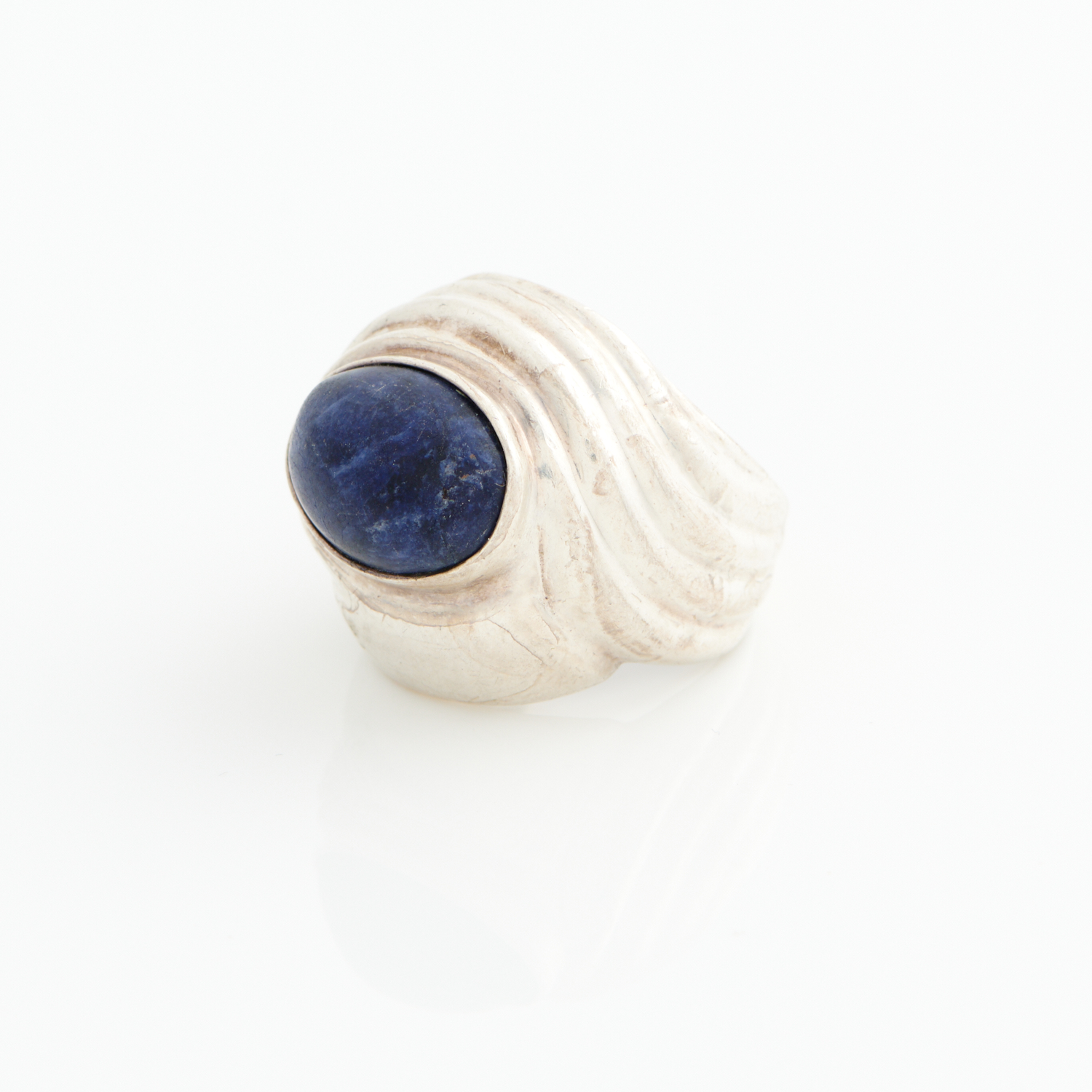 A HARDSTONE RING IN STERLING SILVER, SIZE J 1/2