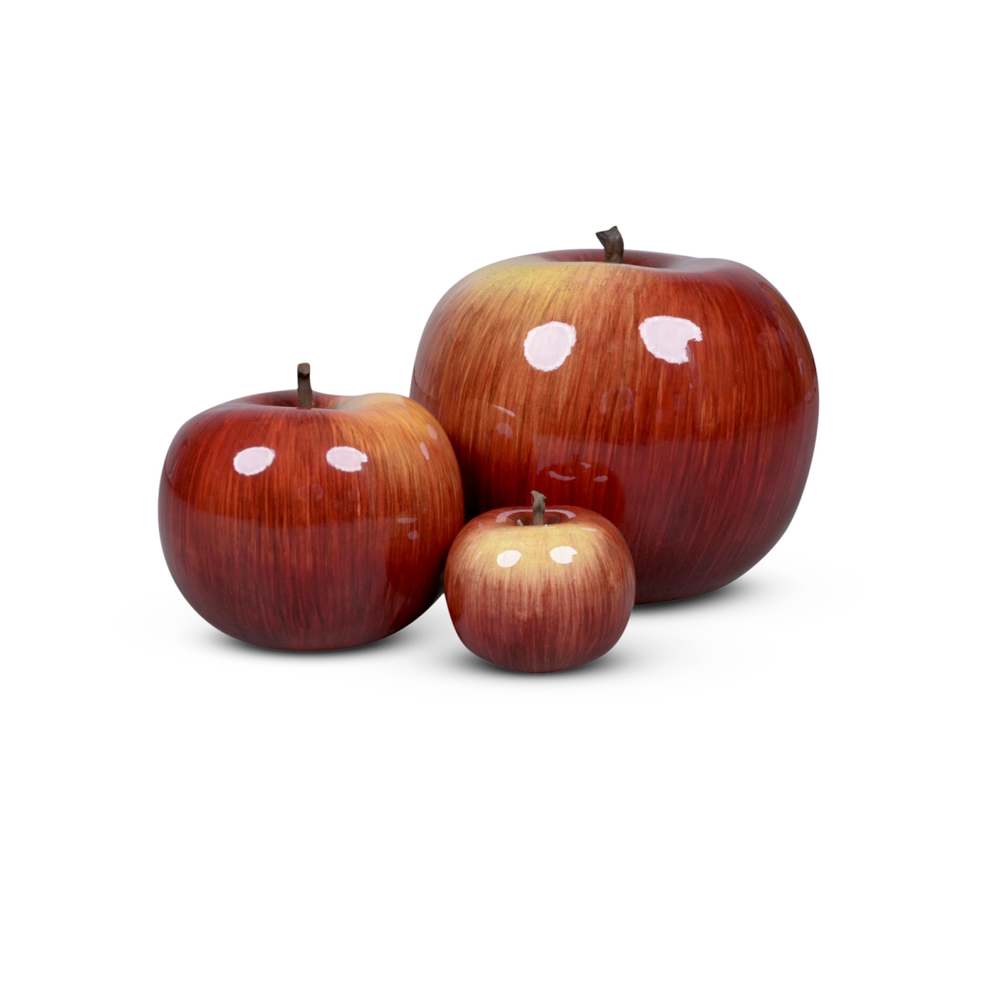 A GROUP OF THREE BULL & STEIN RED AND YELLOW PORCELAIN APPLE SCULPTURES BY LISA PAPPON