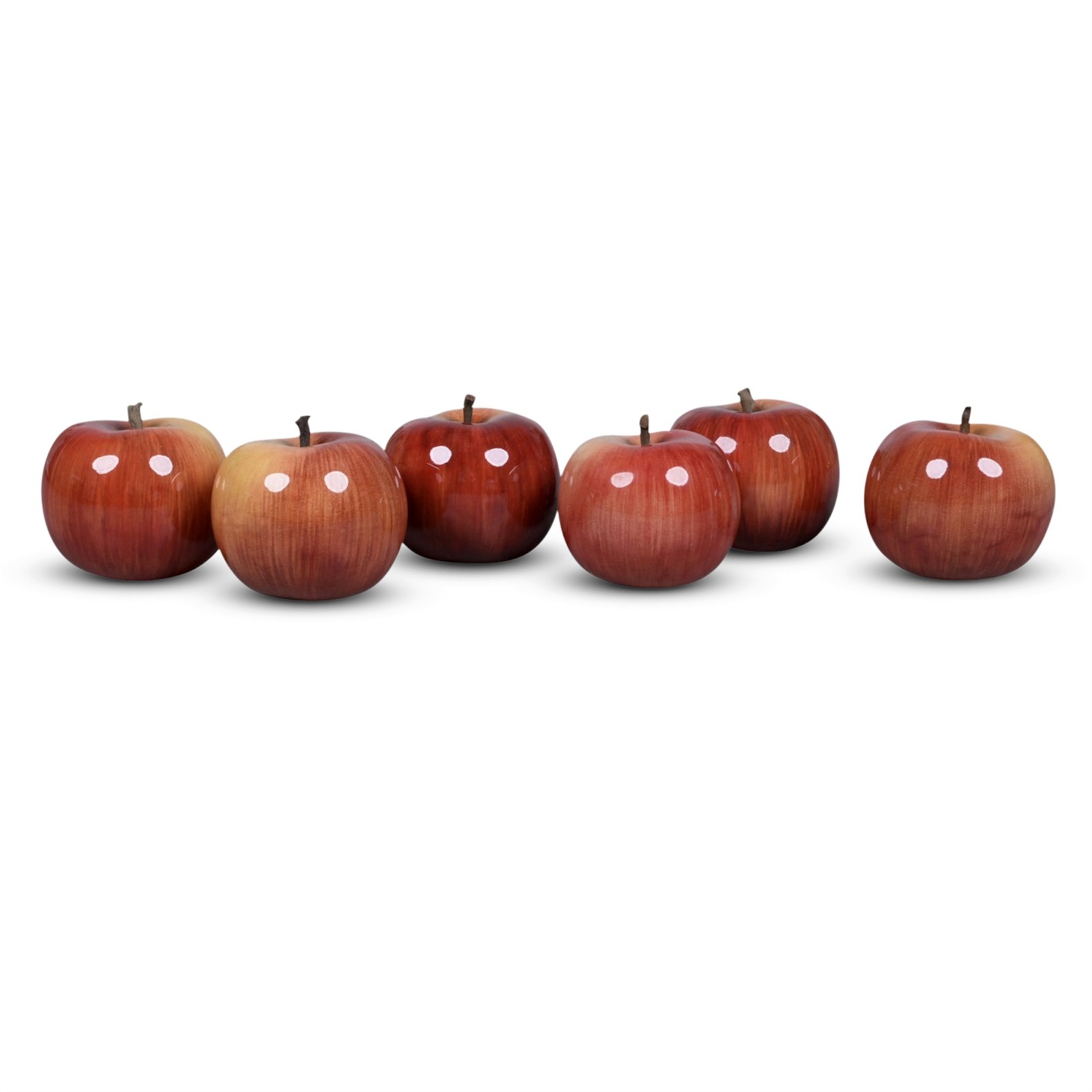 A GROUP OF SIX SMALL BULL & STEIN RED AND YELLOW APPLE PORCELAIN SCULPTURES BY LISA PAPPON
