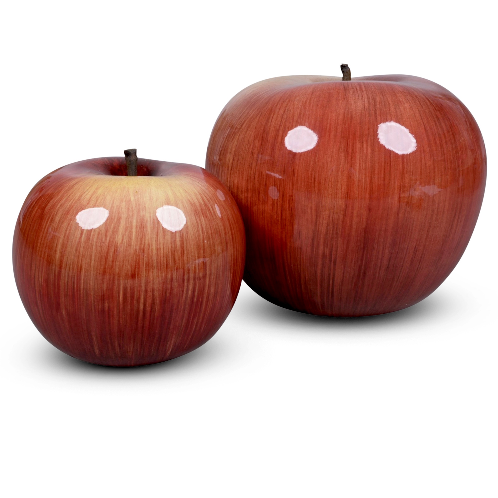 TWO BULL & STEIN RED AND YELLOW APPLE PORCELAIN SCULPTURES BY LISA PAPPON