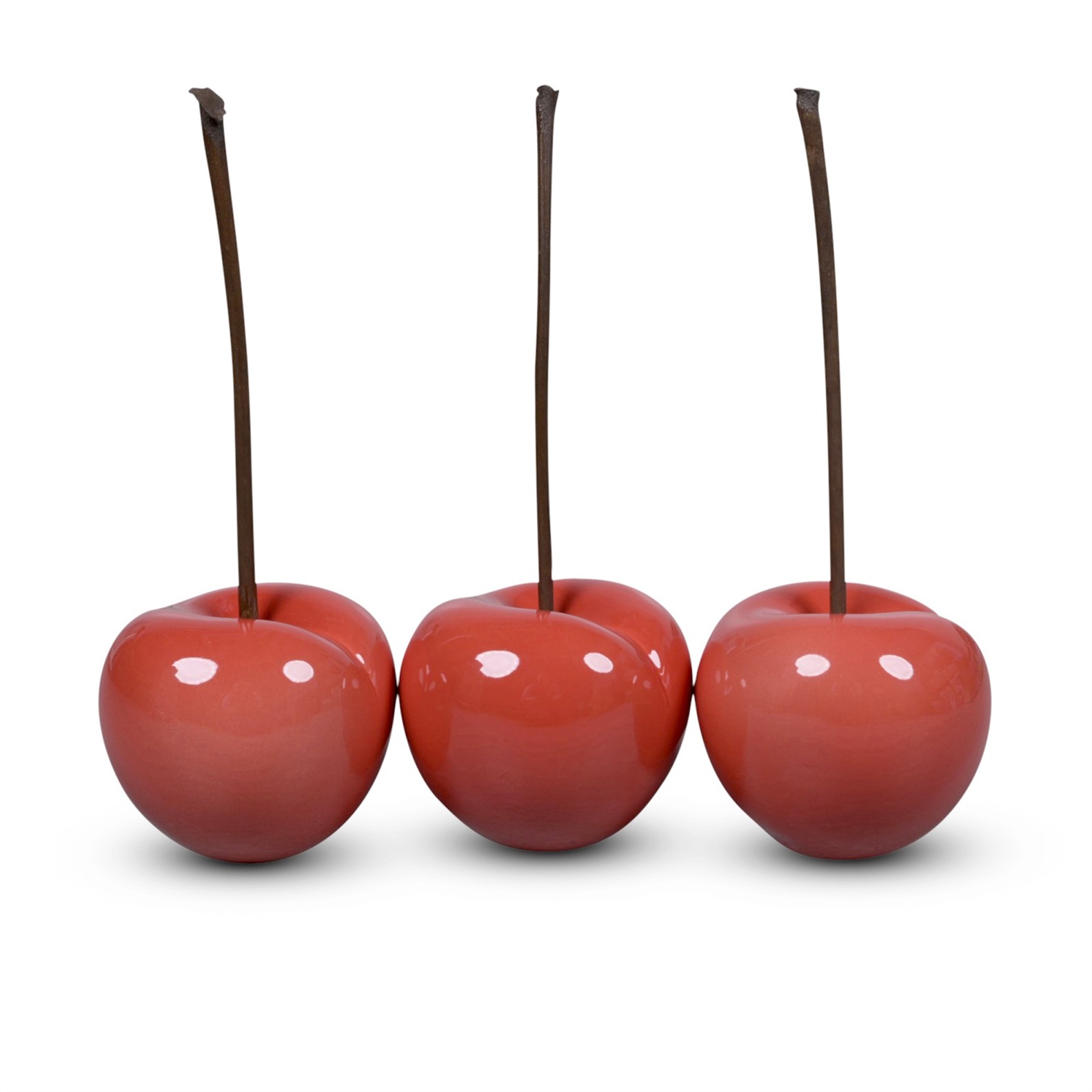 A GROUP OF THREE BULL & STEIN RED CHERRY PORCELAIN SCULPTURES BY LISA PAPPON