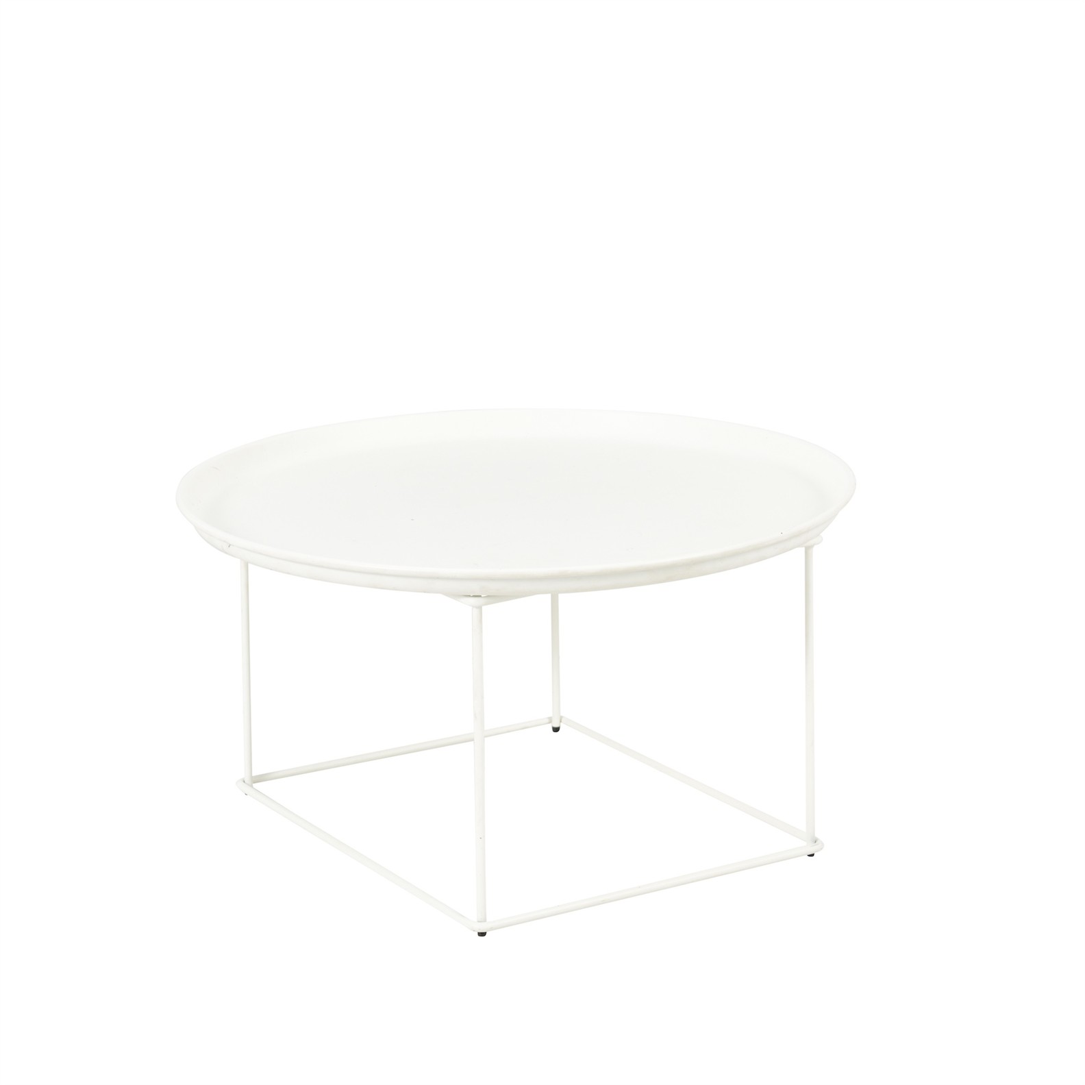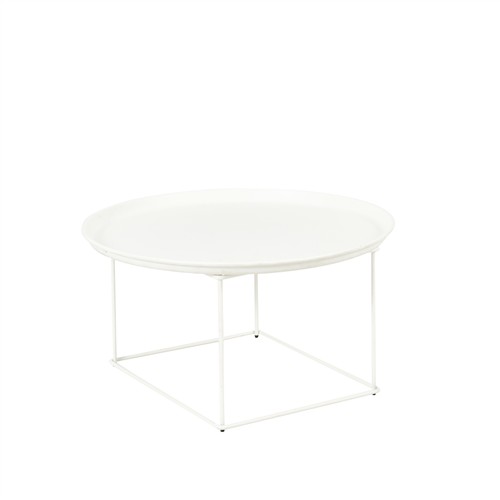 White powder-coated metal tray style top on metal rod base. Manufacturer mark present to underside.