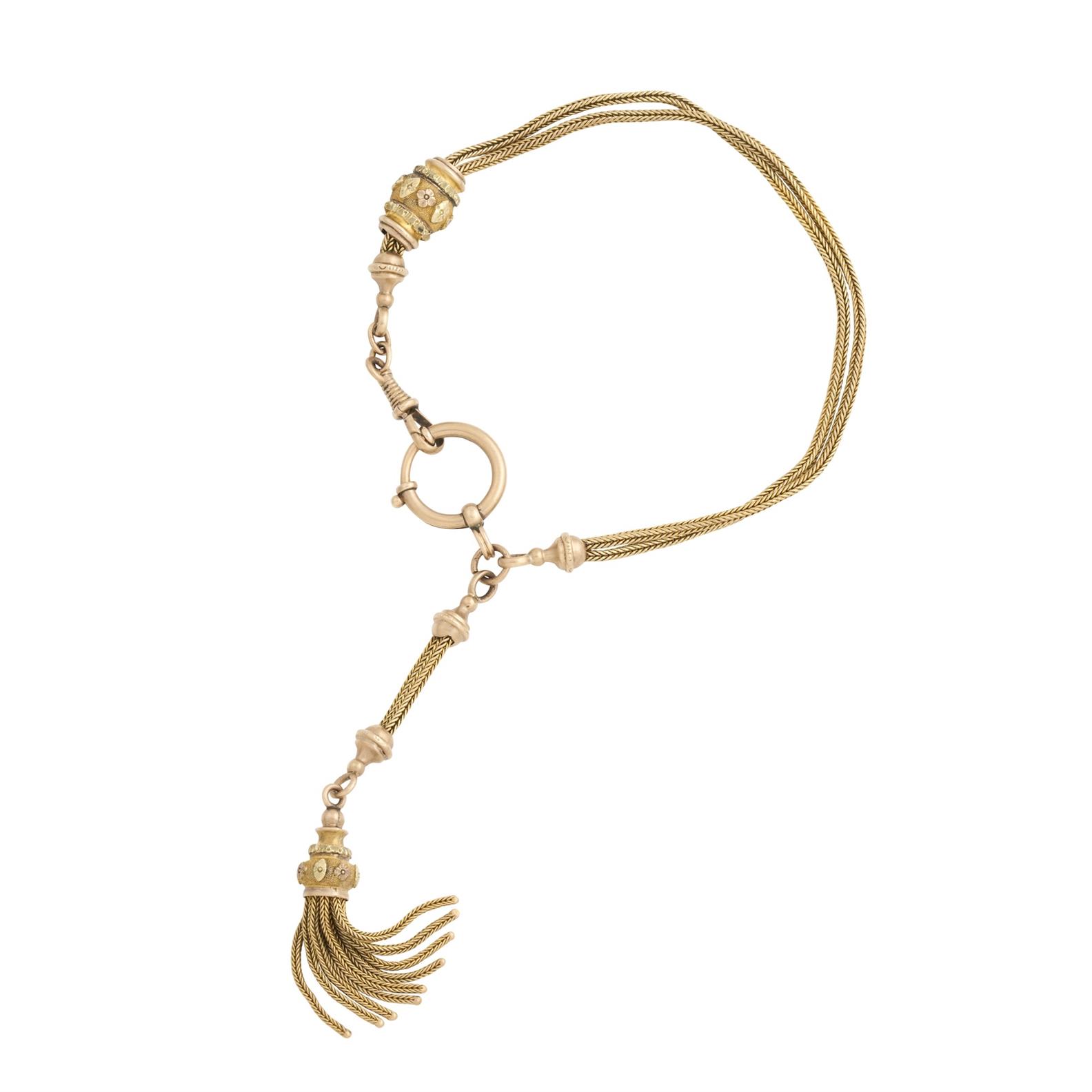 Of ornate design, completed by a tassel, length 240mm, gross weight approximately 20.5 grams.