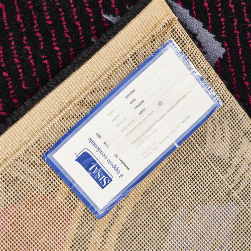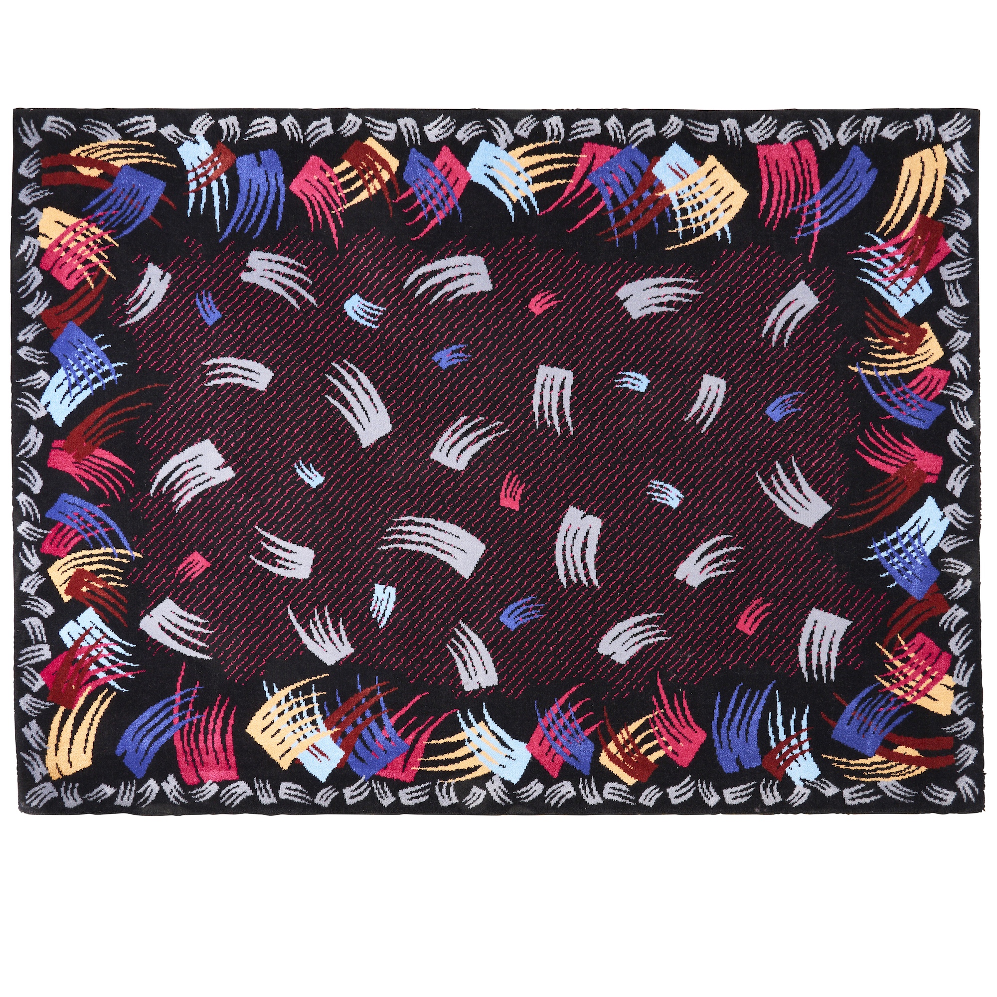 Black ground with brush stroke decoration. N. 118/820. 100% pure wool.