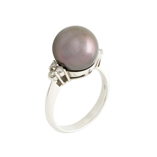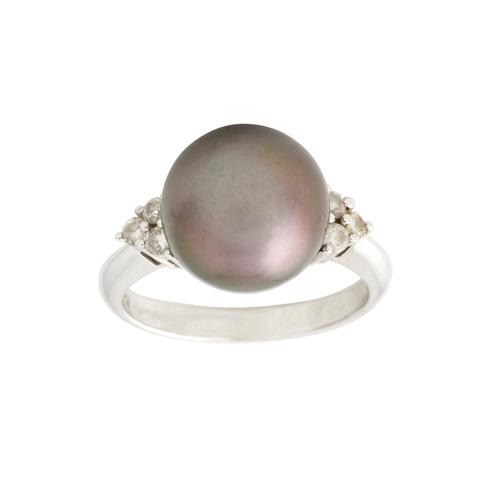 18CT WHITE GOLD, TAHITIAN PEARL AND DIAMOND RING