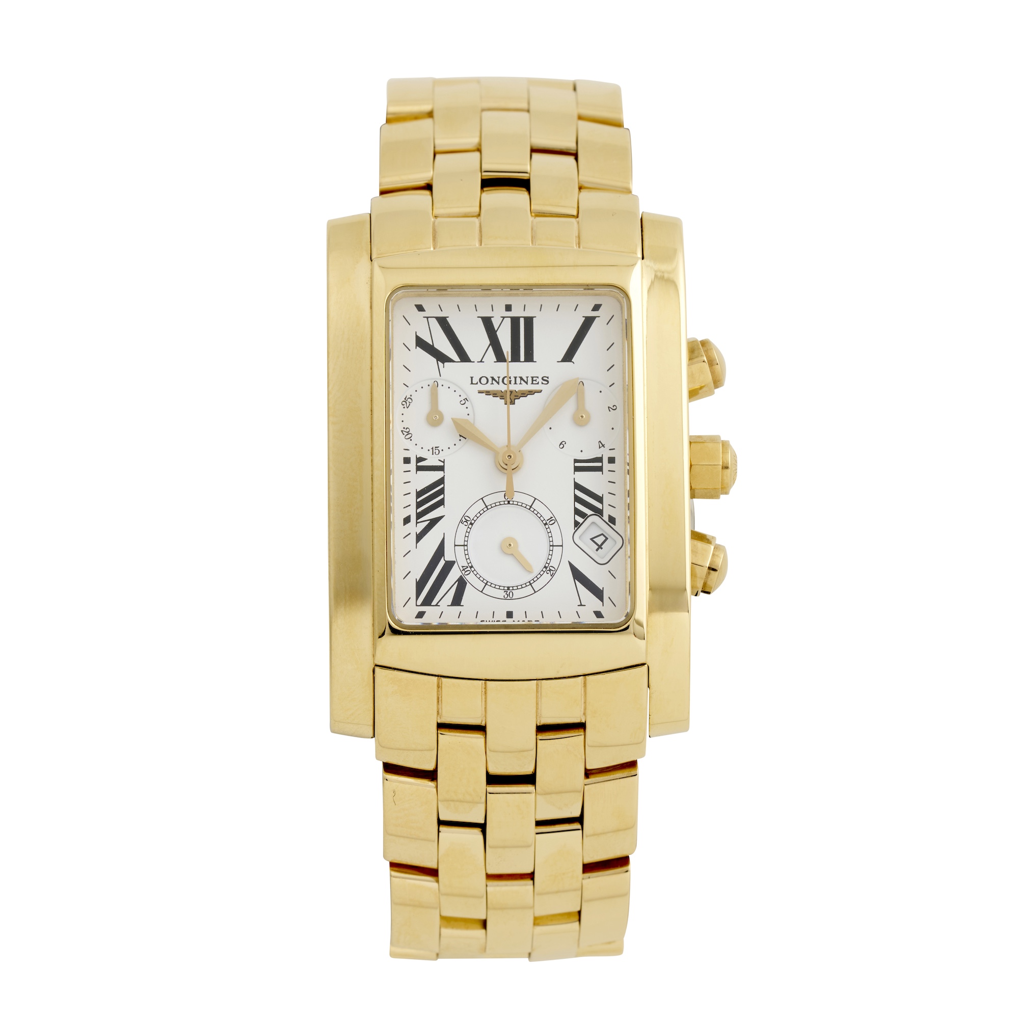 Closure: Longines fitted 18ct gold brick link bracelet and double folding clasp