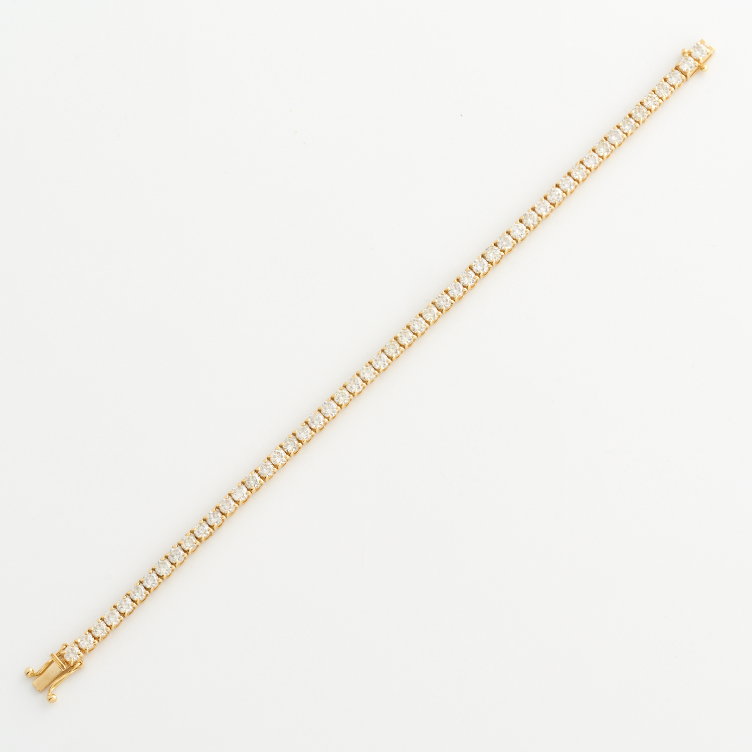 A DIAMOND TENNIS BRACELET IN 18CT GOLD, THE DIAMONDS TOTALLING 7.85CT, H-I COLOUR, VS-SI CLARITY, 180MM, 11.3GMS, ACCOMPANIED BY A VALUATION