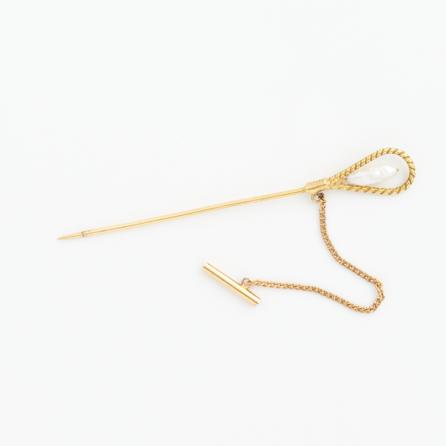 A SEED PEARL TIE PIN IN 15CT GOLD, 60MM, TOTAL WEIGHT 1.5GMS