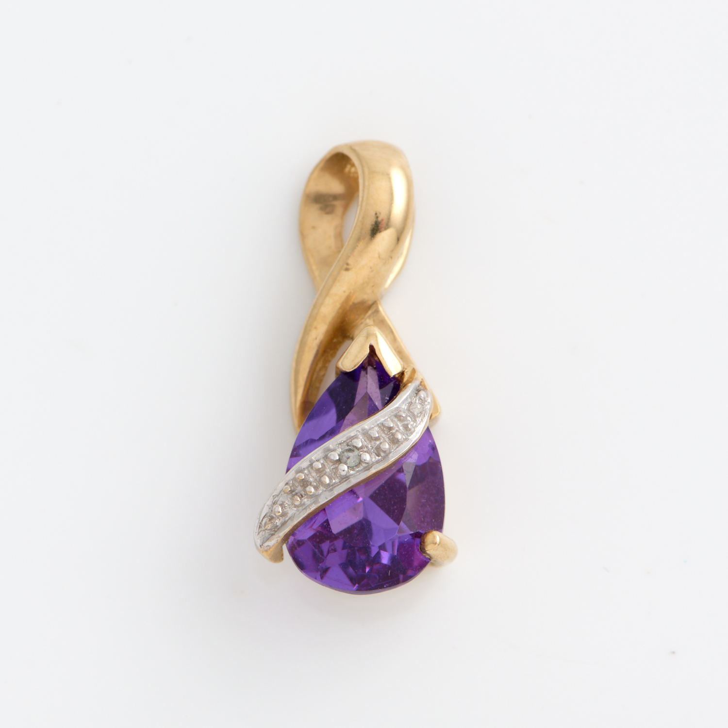 AN AMETHYST PENDANT IN 9CT GOLD, 20MM X 6MM, 1.5GMS