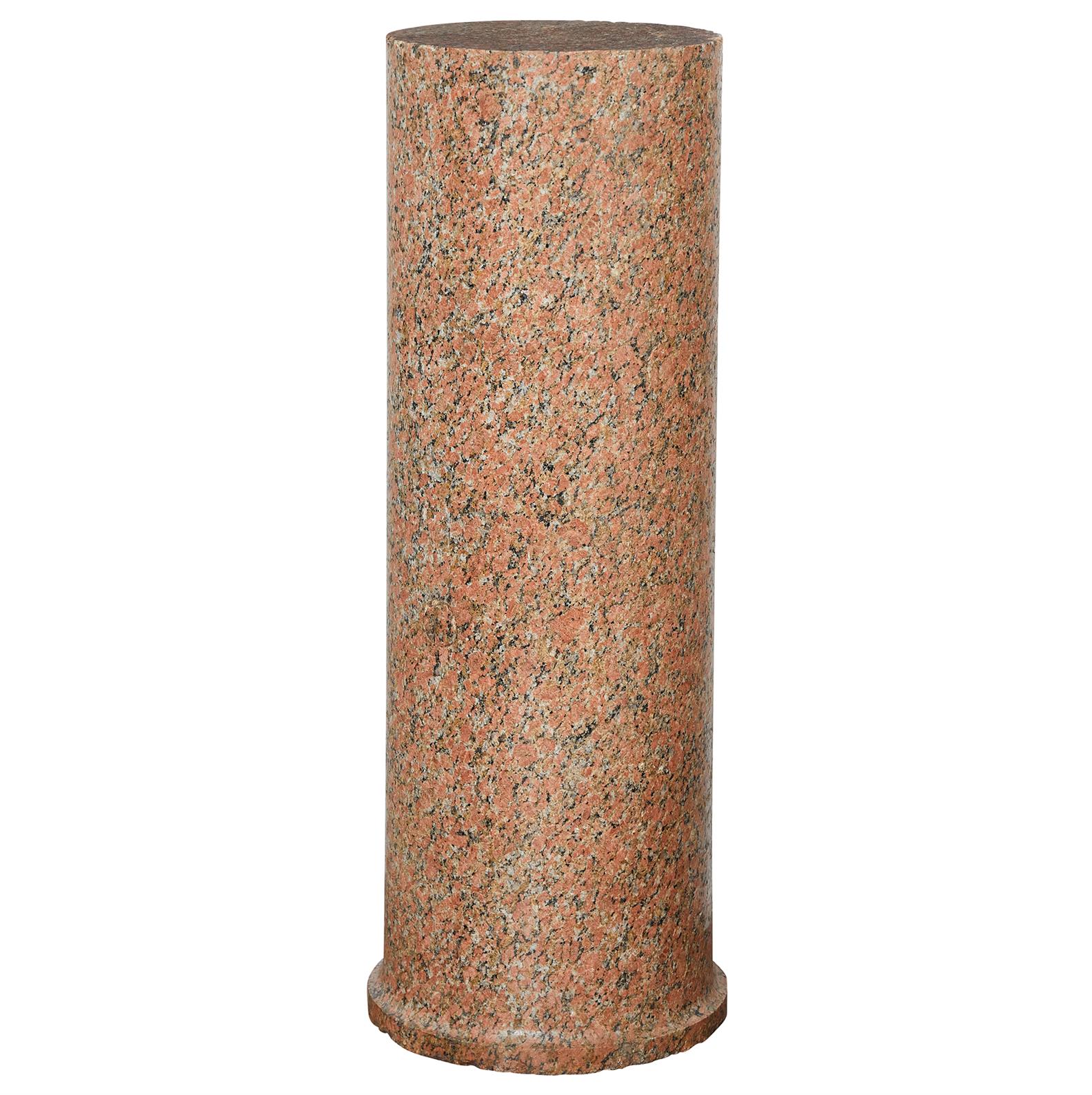 AN ANTIQUE PINK AND GREY GRANITE COLUMN PEDESTAL