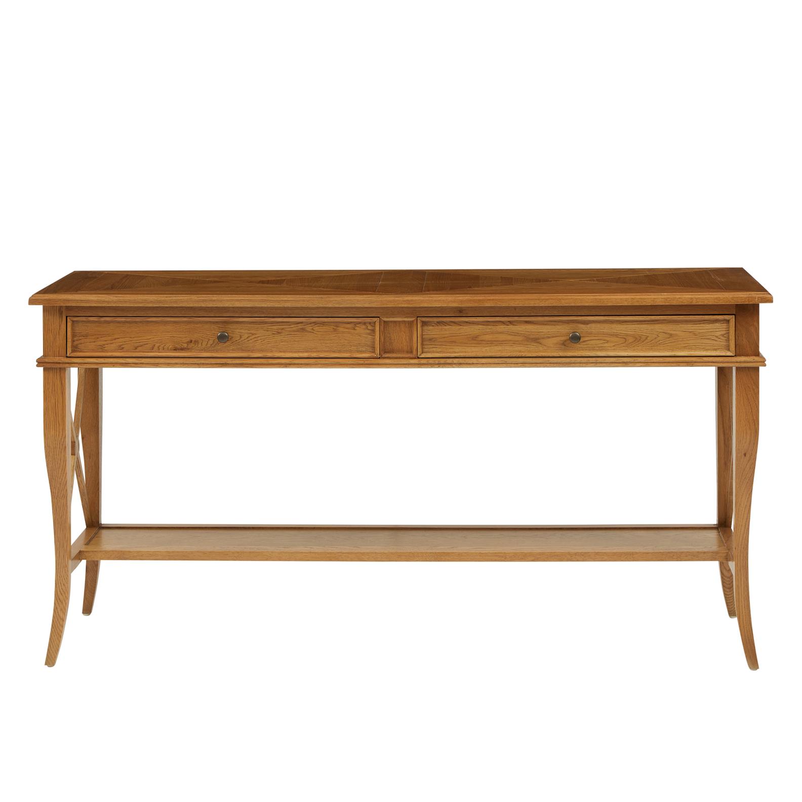 In the Directoire style having two frieze drawers, X-framed end supports and united by an undertier.